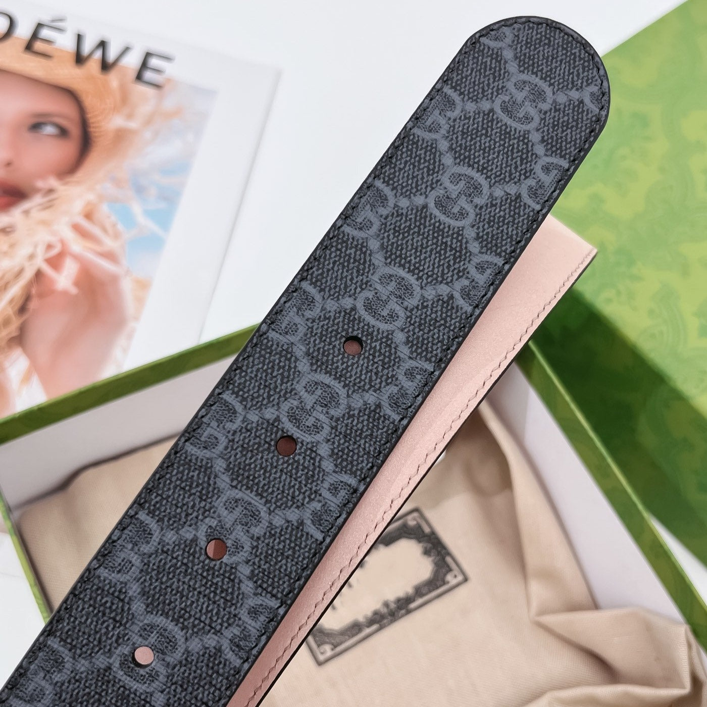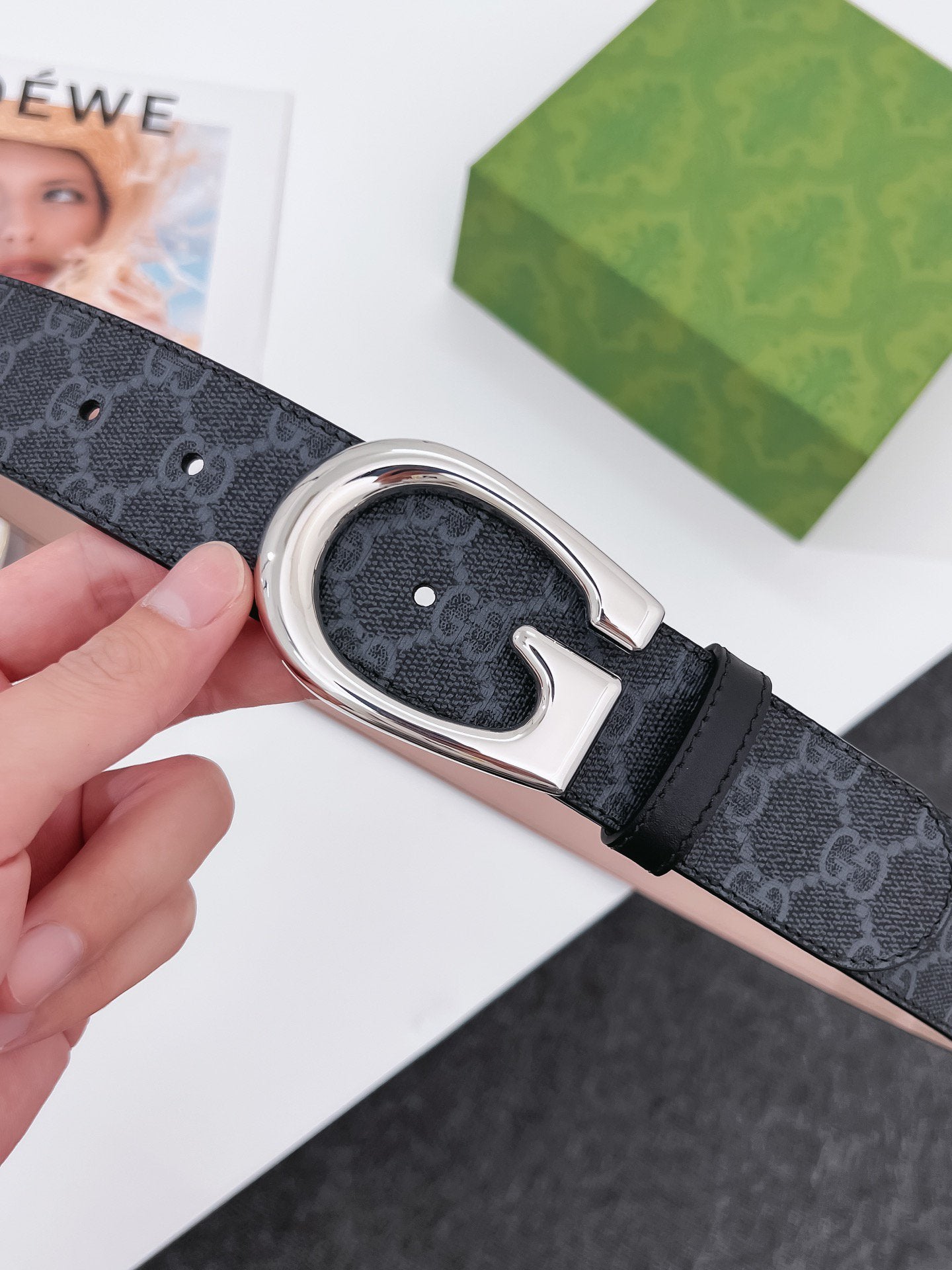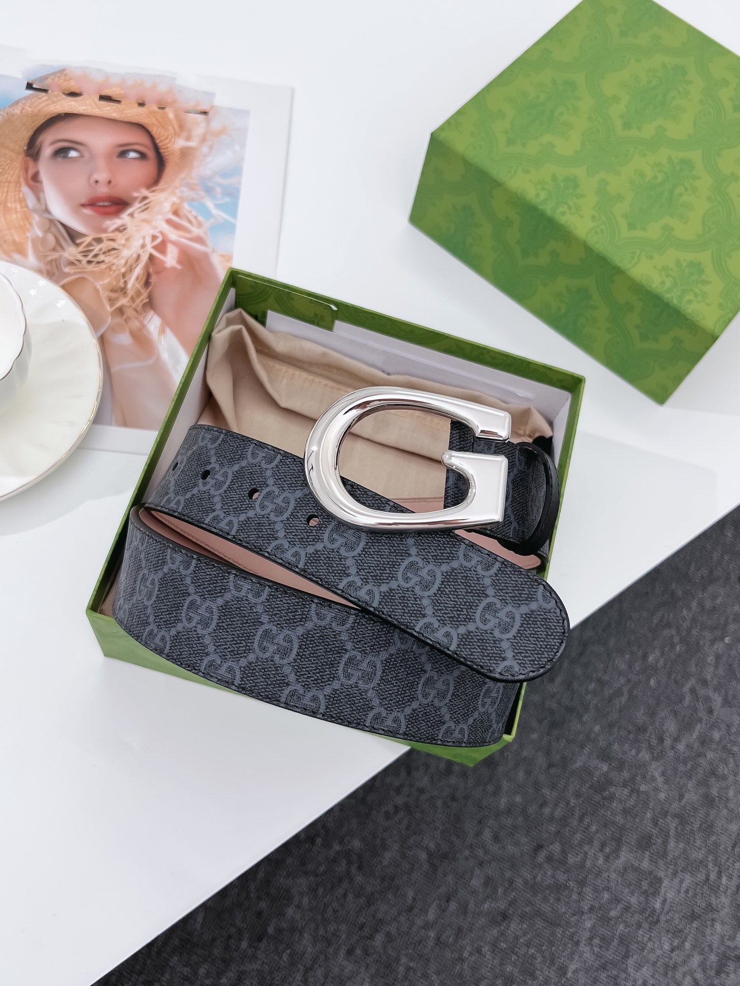 G BELT SILVER BUCKLE BLACK 40MM BEIGE CANVAS