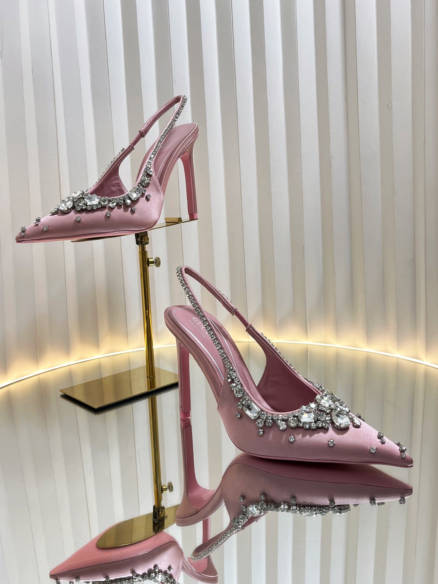 GC 2025 Crystal Embellished High Heels Slingbacks Pink Silk Sheepskin 294524