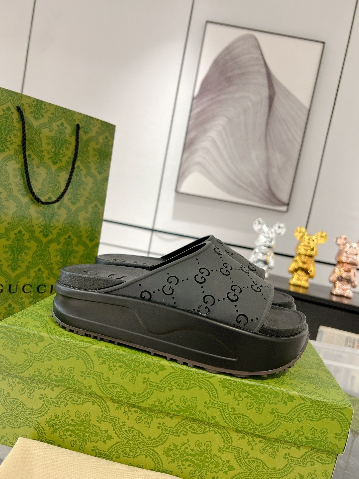 GC 25 50mm Monogram Slide Sandal Black Cowhide 292394