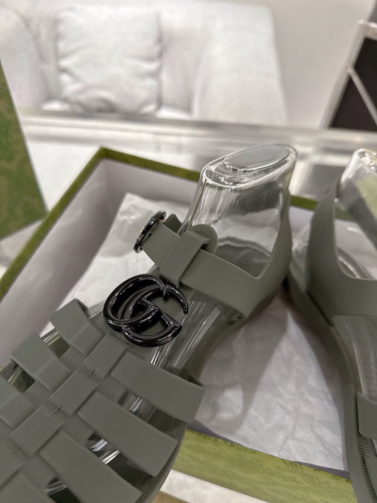GC 25 Glossy Black Double G Sandal Dark Green Rubber 292426