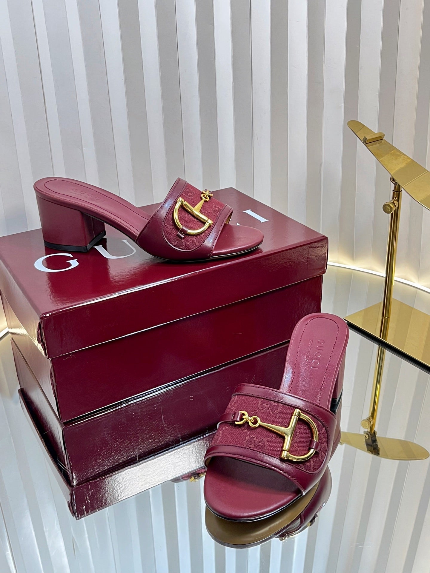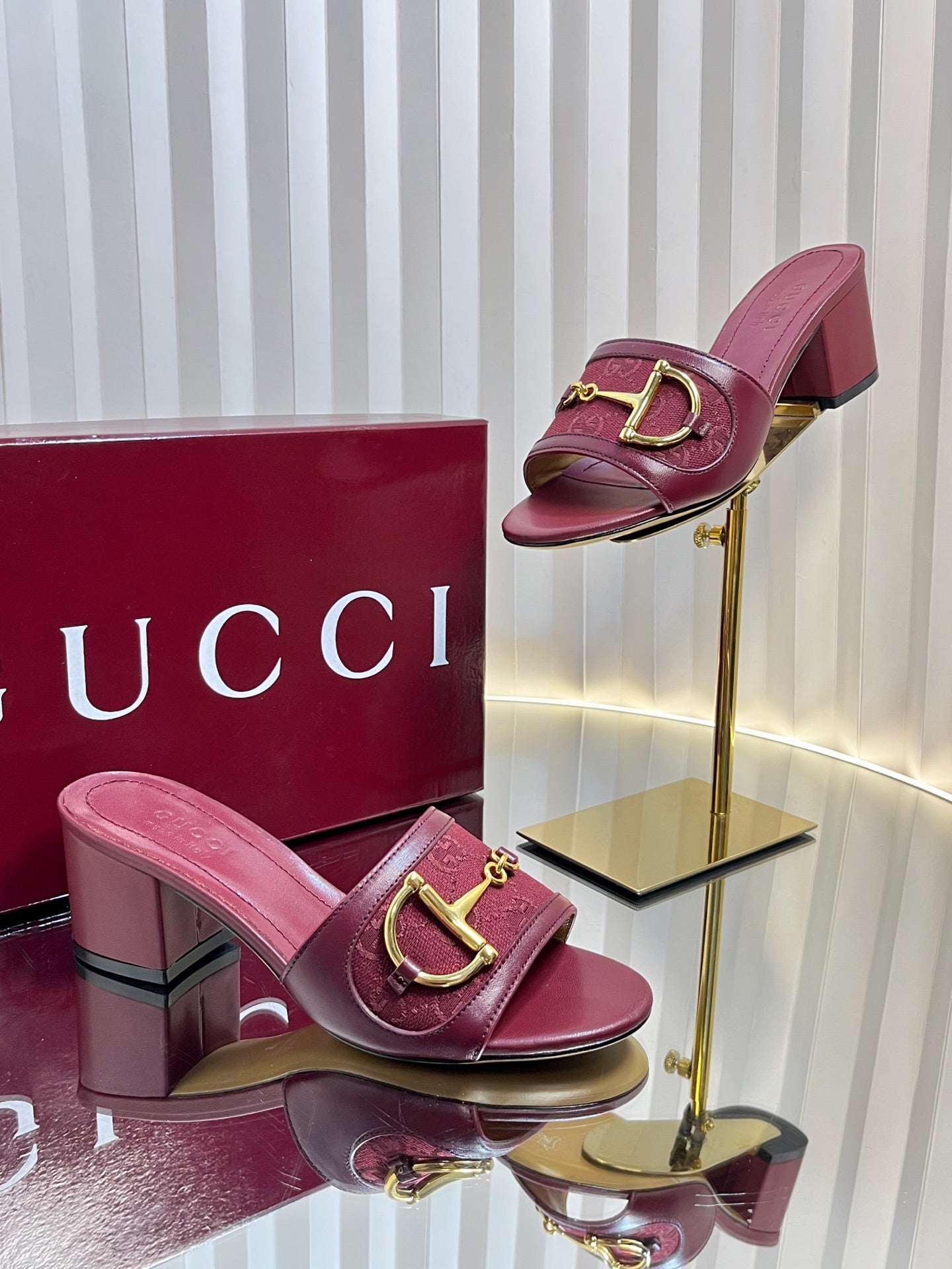 GC 25 Horsebit GG 50mm Sandals Red Canvas 294677
