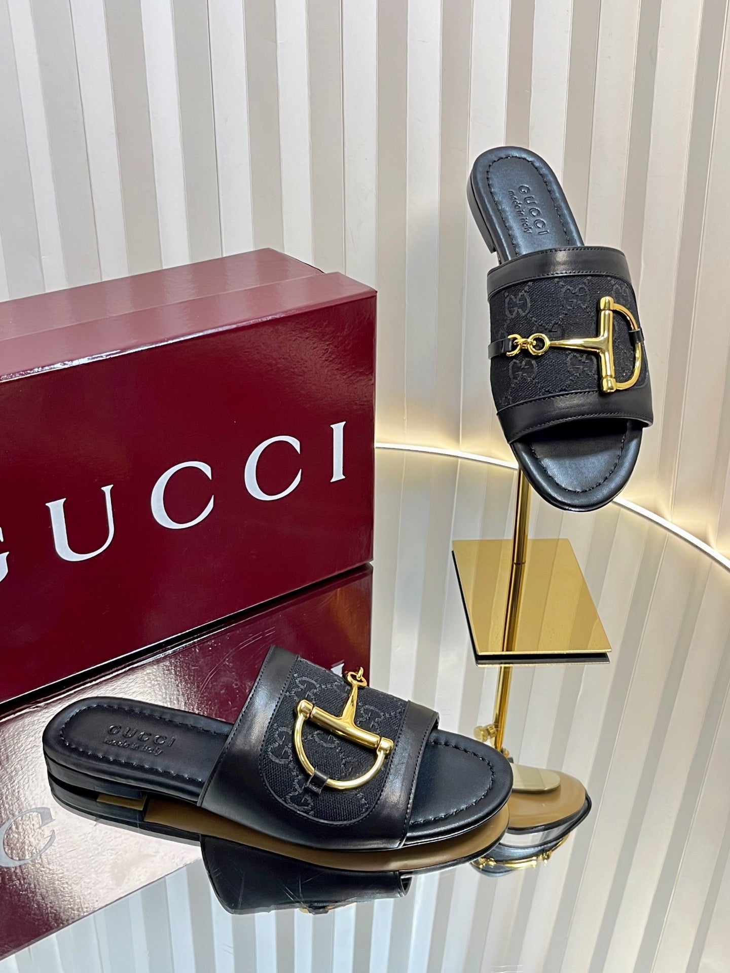 GC 25 Horsebit GG Sandals Black Canvas 294676