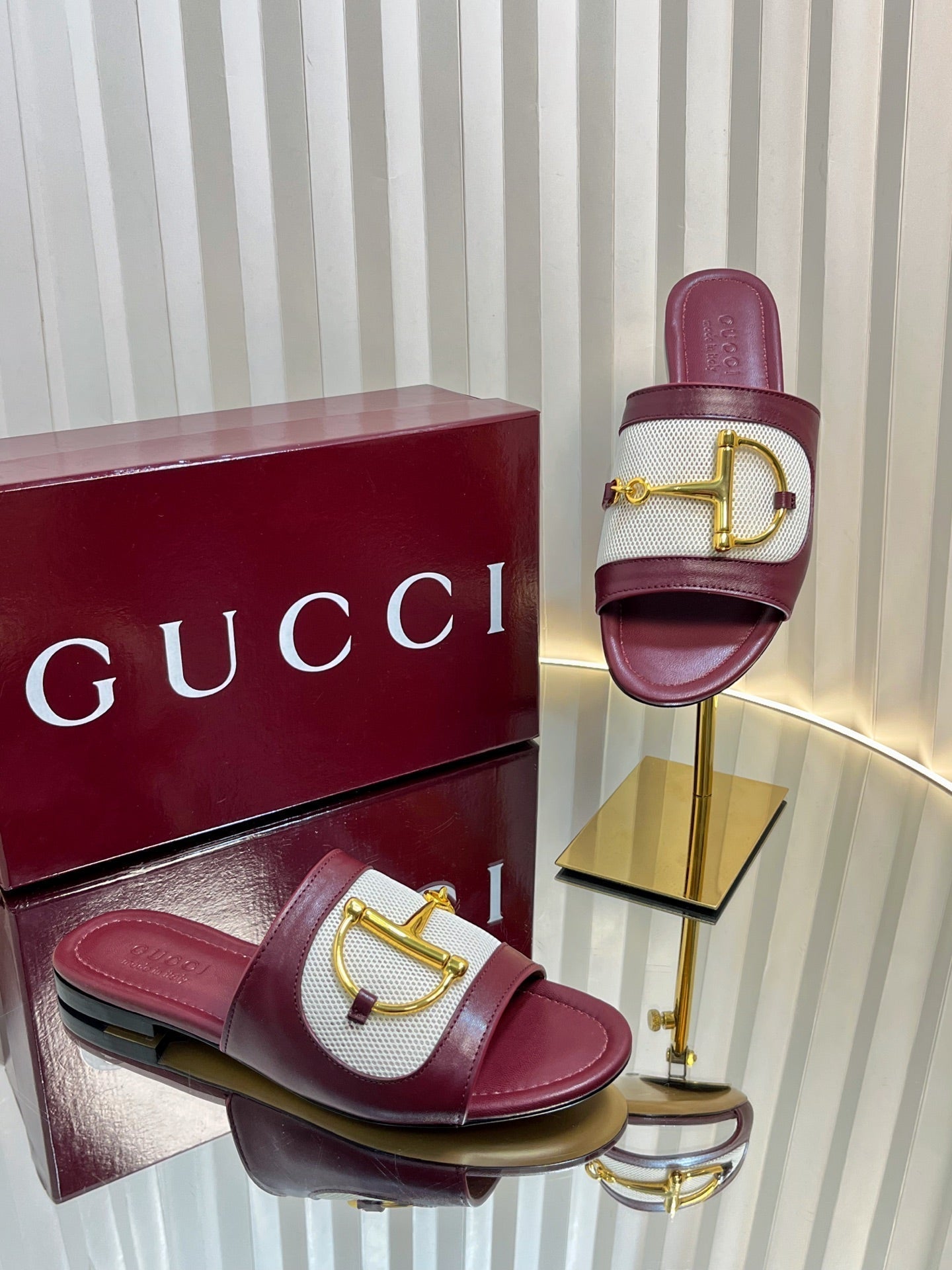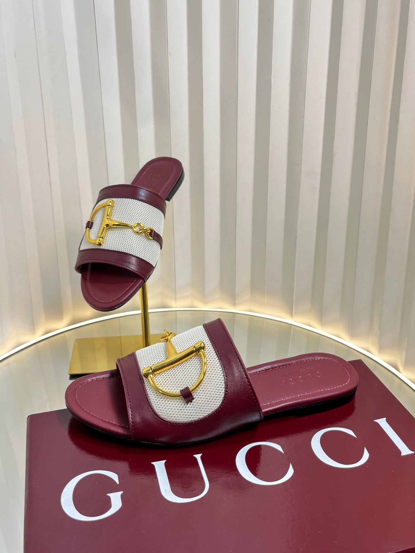 GC 25 Horsebit GG Sandals Red Canvas Sheepskin 294661