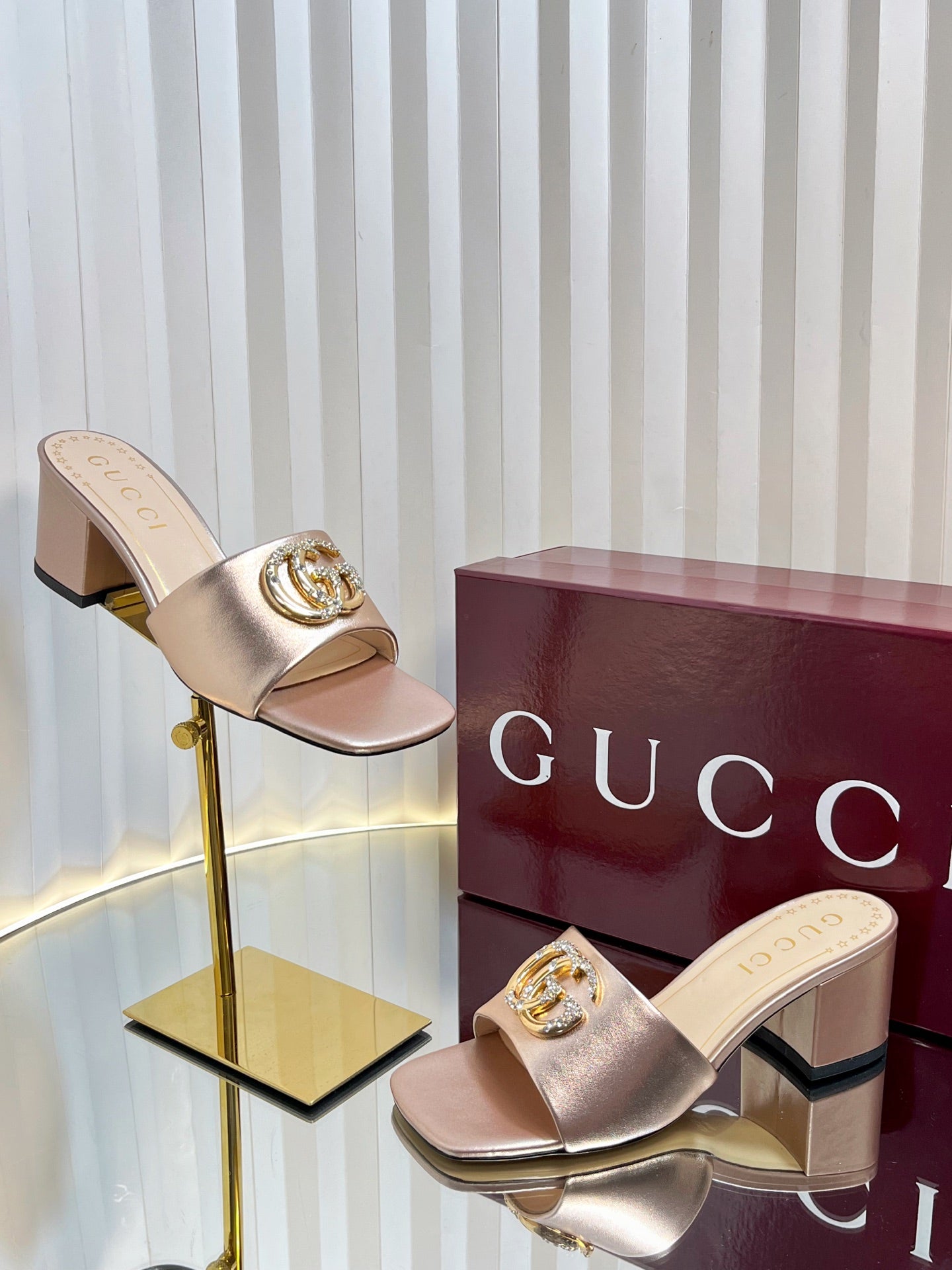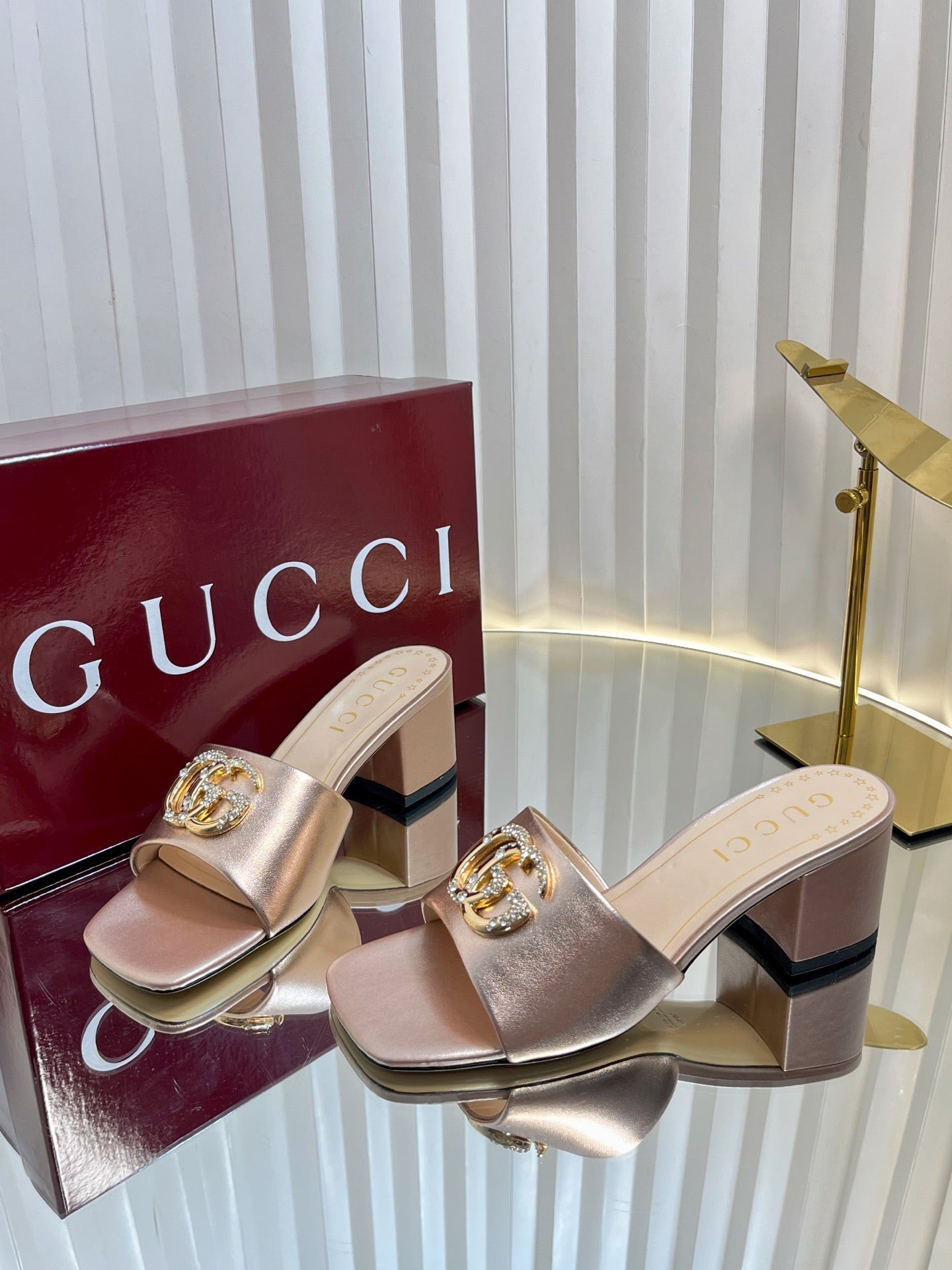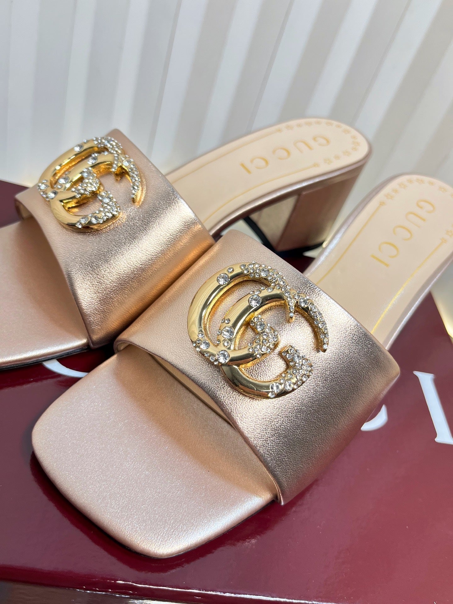GC 25 Interlocking G Heeled Sandal Nude Patent Leather 294640