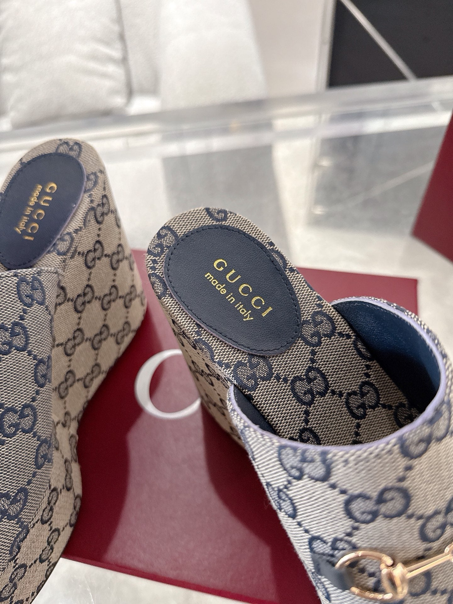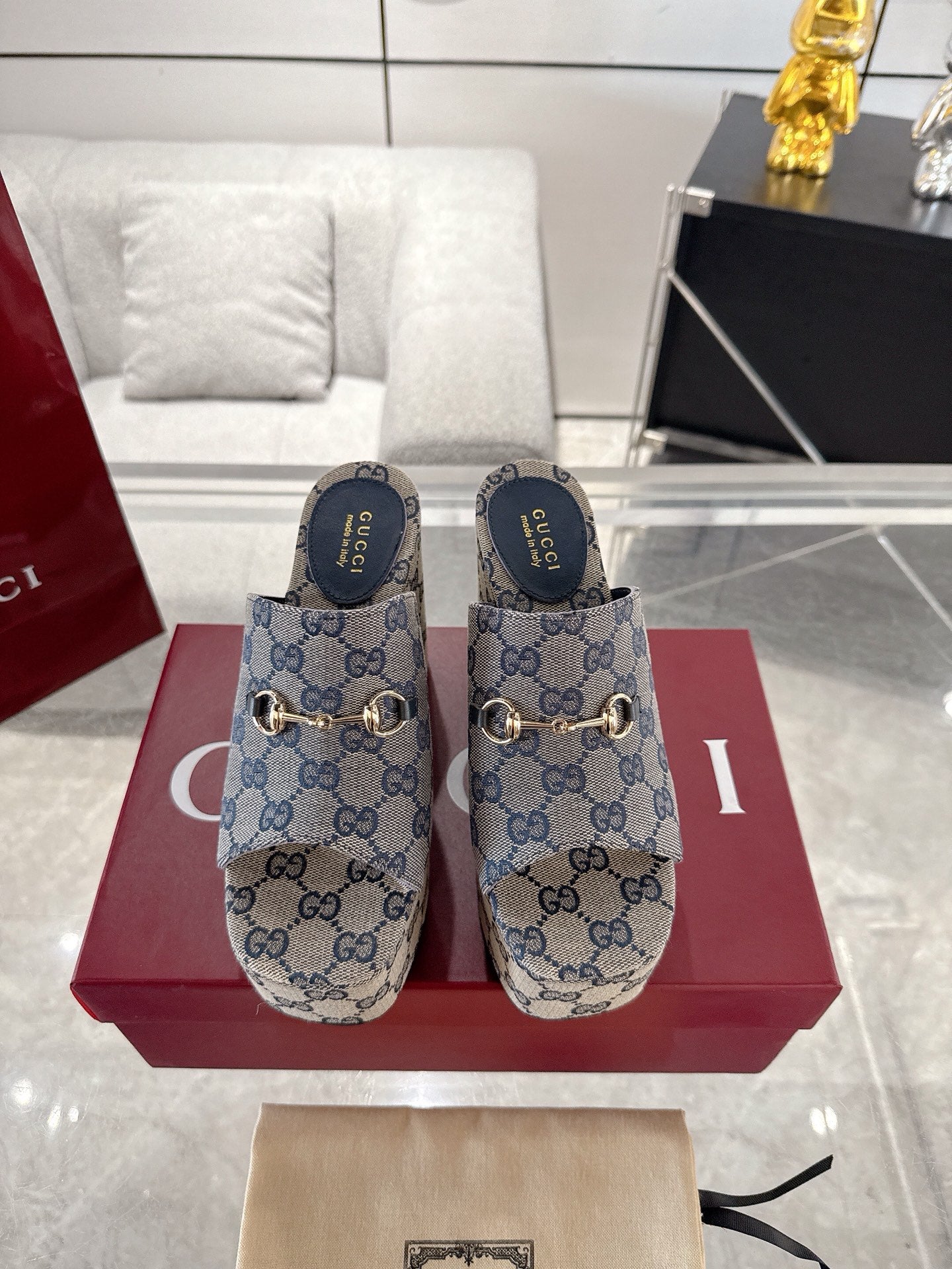 GC Wedge With Horsebit Sandal Gray Blue Canvas 292420