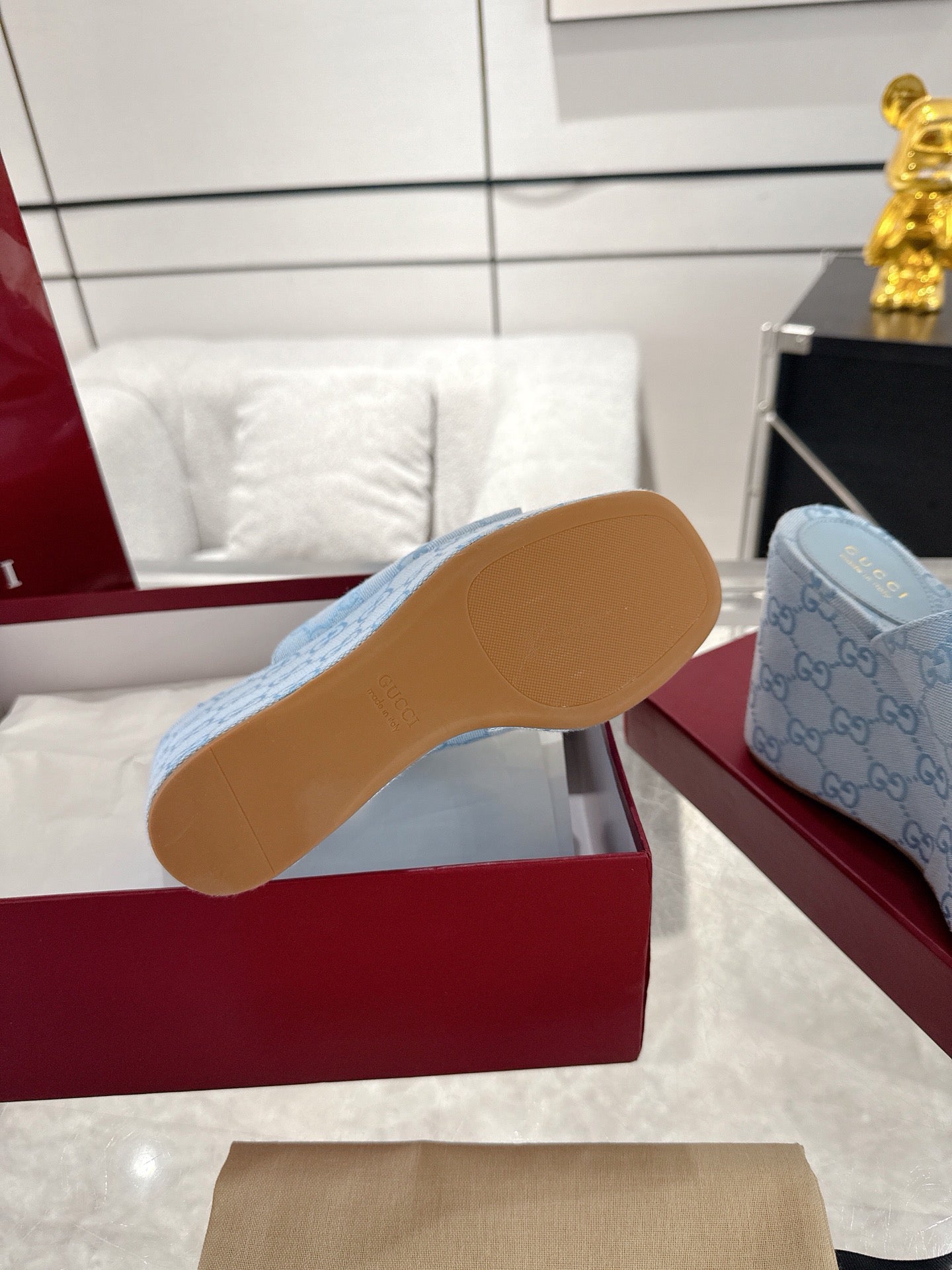 GC Wedge With Horsebit Sandal Light Blue Canvas 292421