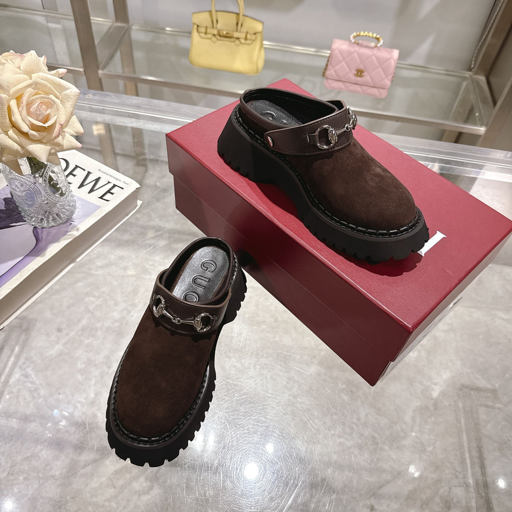 GG 2025 Horsebit Dark Brown mix Black Suede Sheepskin 416543