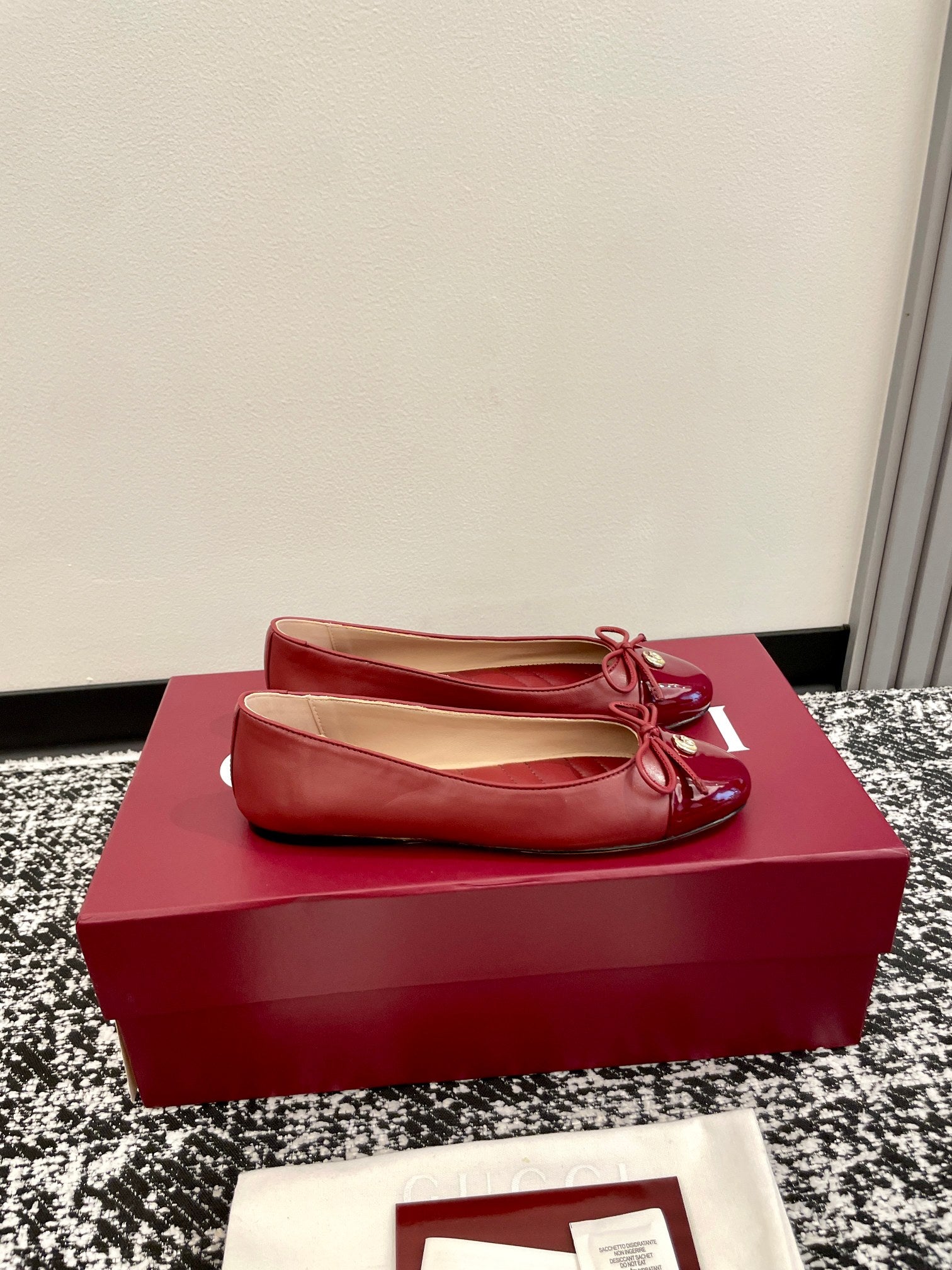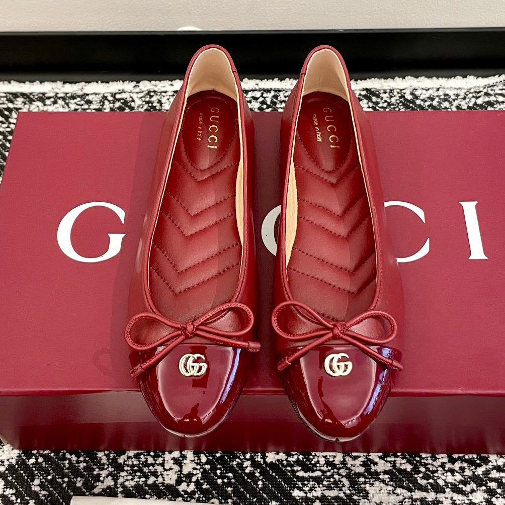 GG 2025 Marmont Ballet Flat Red Patent Leather and Sheepskin 555147