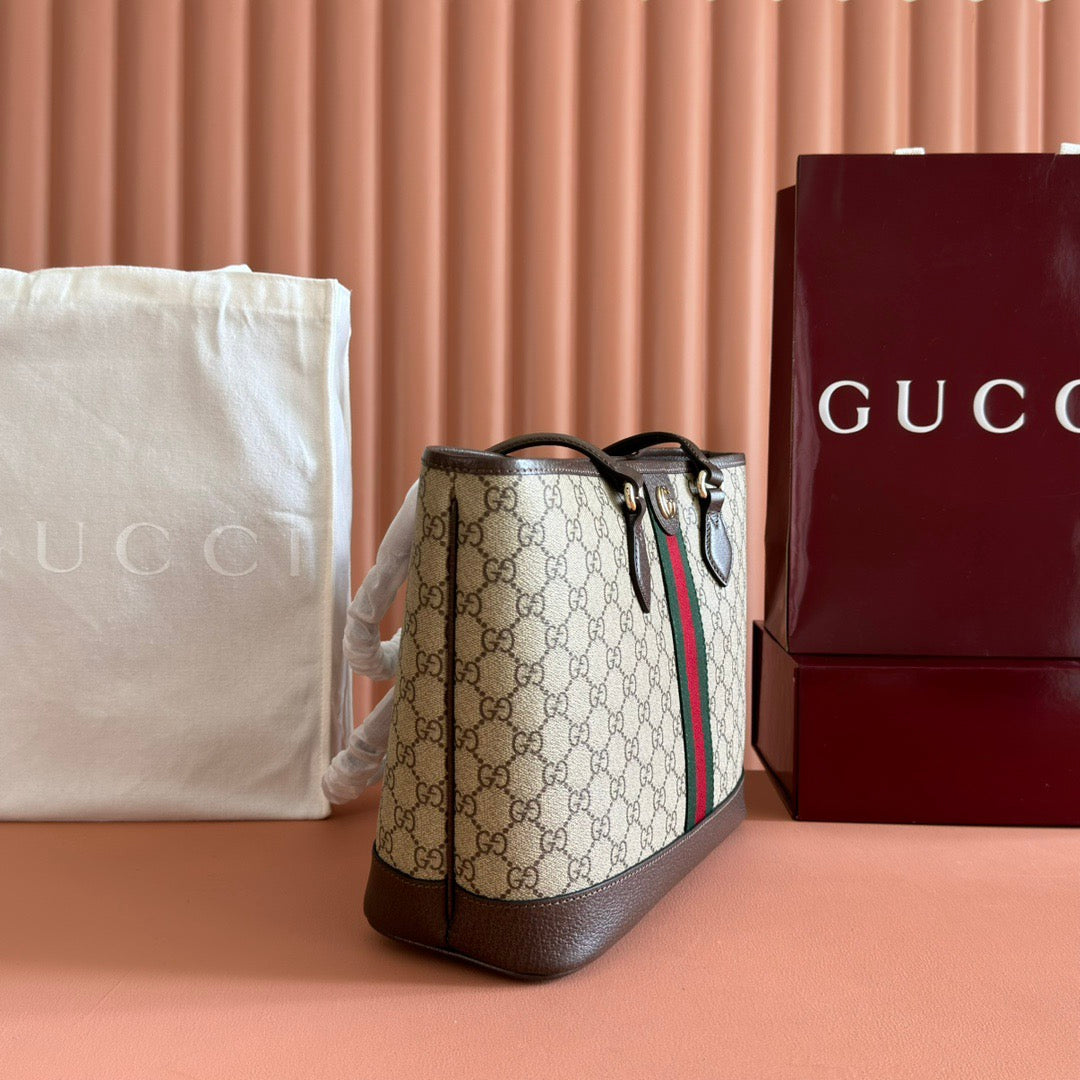 GG 2025 Ophidia 31cm Tote Bag Ebony Brown Canvas Leather