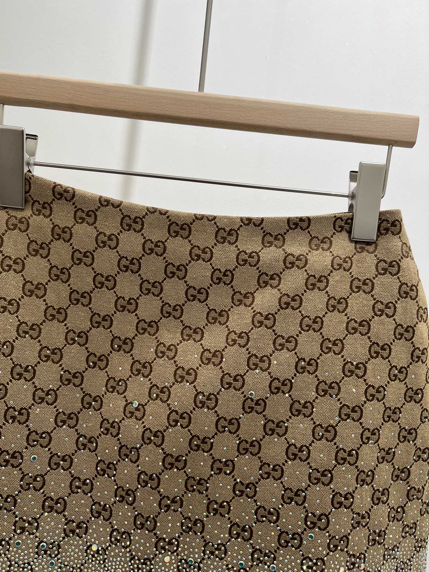 GG Beige Monogram Crystal Embellished Mini Skirt