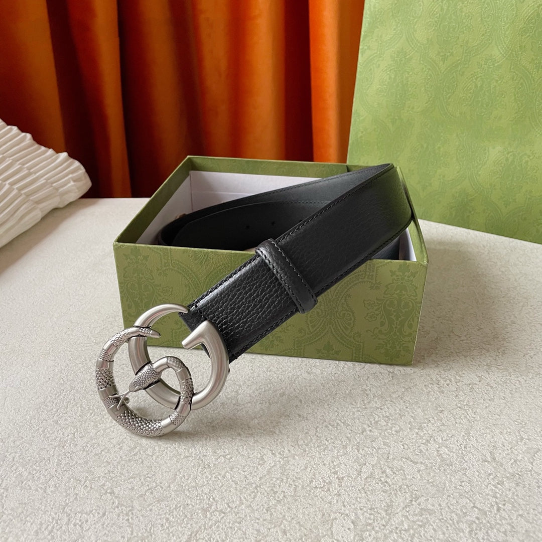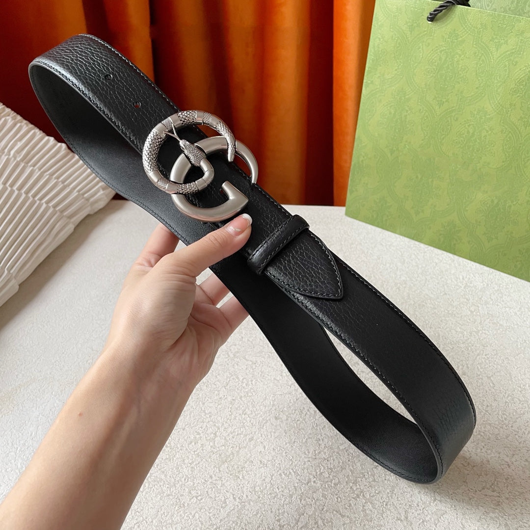 GG BELT DOUBLE G SERPENTI BUCKLE BLACK LEATHER