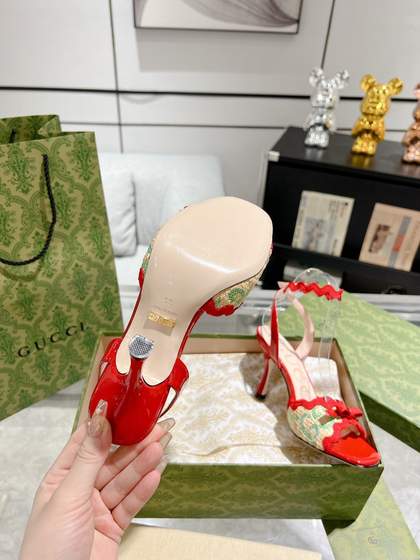 GG HIGH - HEEL SANDAL CRIMSON FABRIC ATTACH BOW