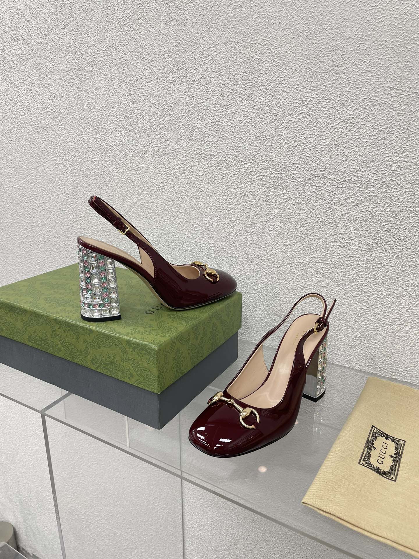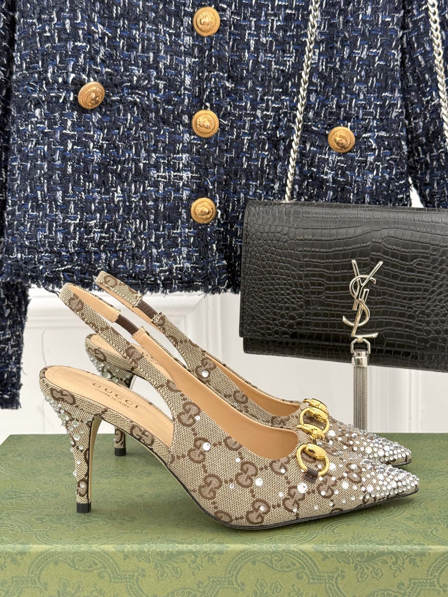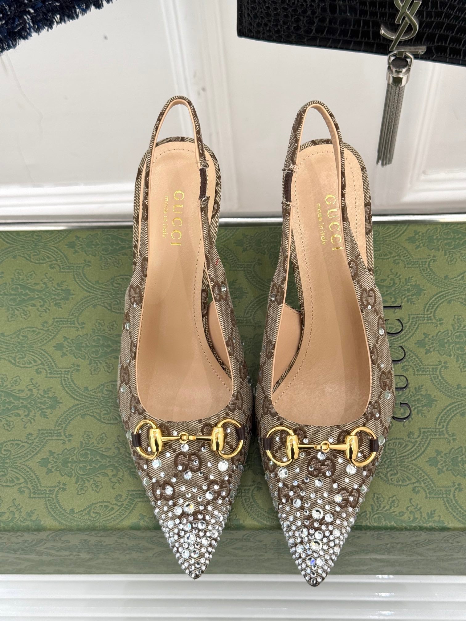 GG Horsebit Slingback Flat Red Ebony Monogram Canvas Point Toe Crystal-Embellished