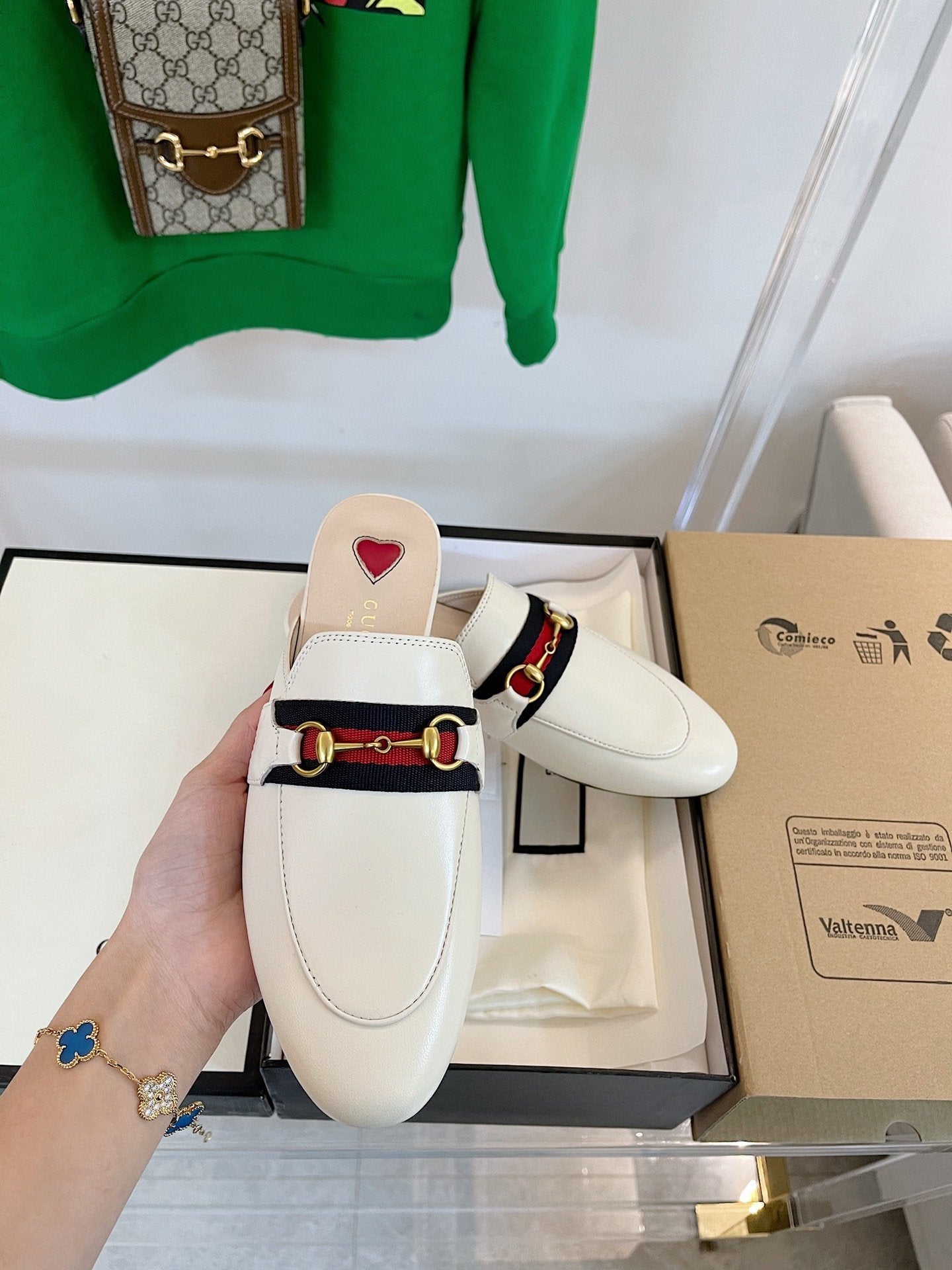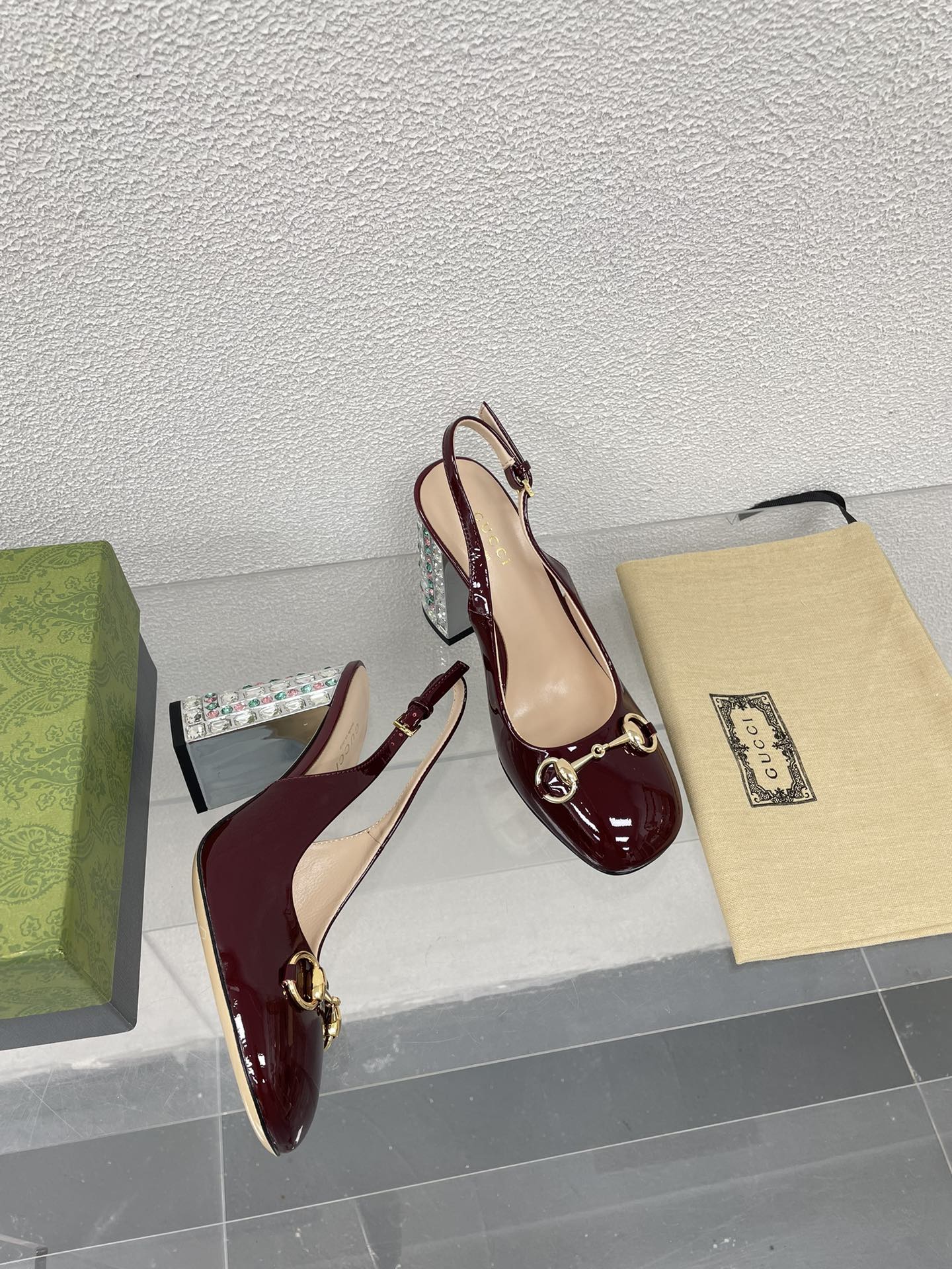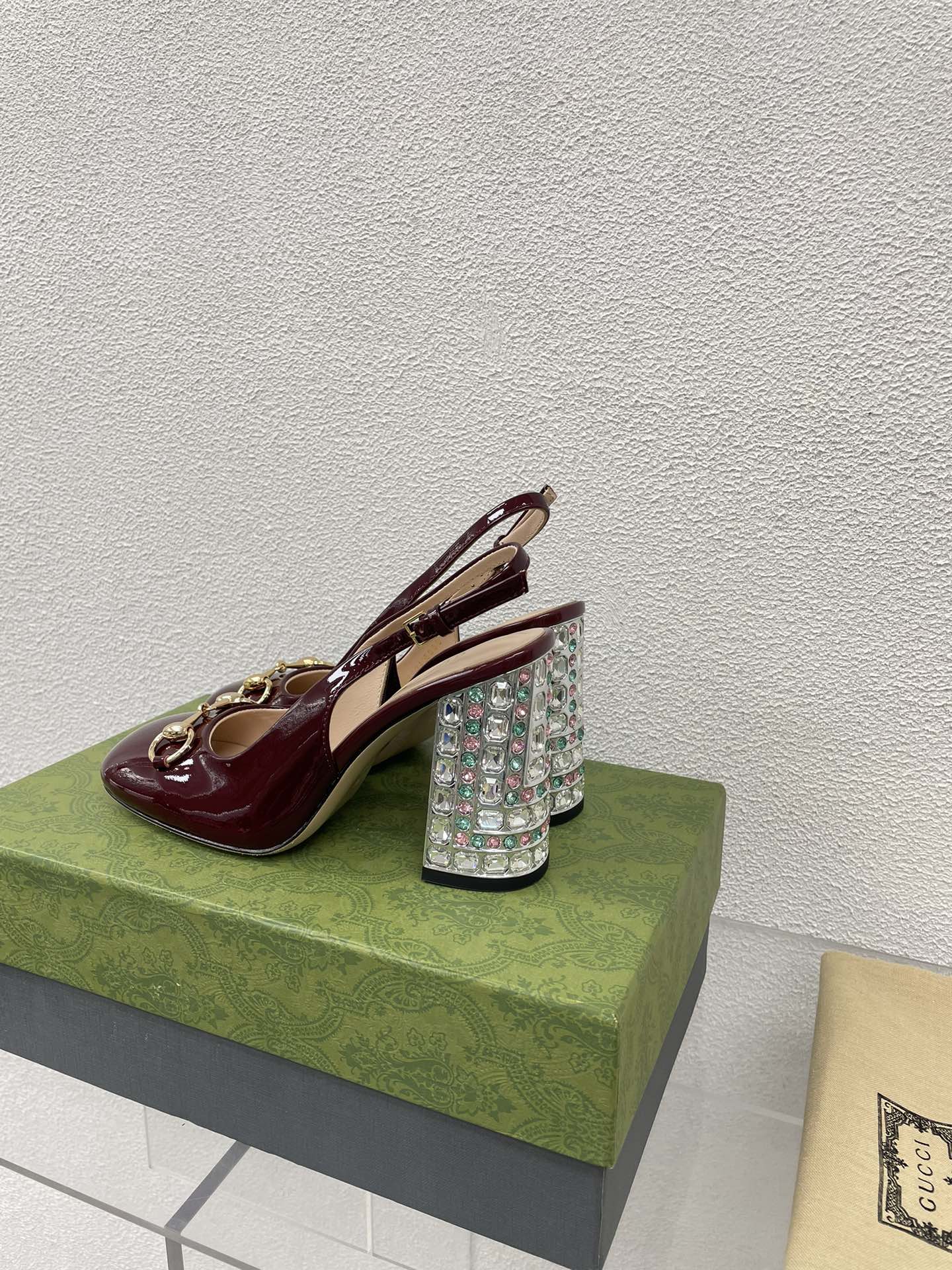 GG Horsebit Slingback Flat Red Ebony Monogram Canvas Point Toe Crystal-Embellished