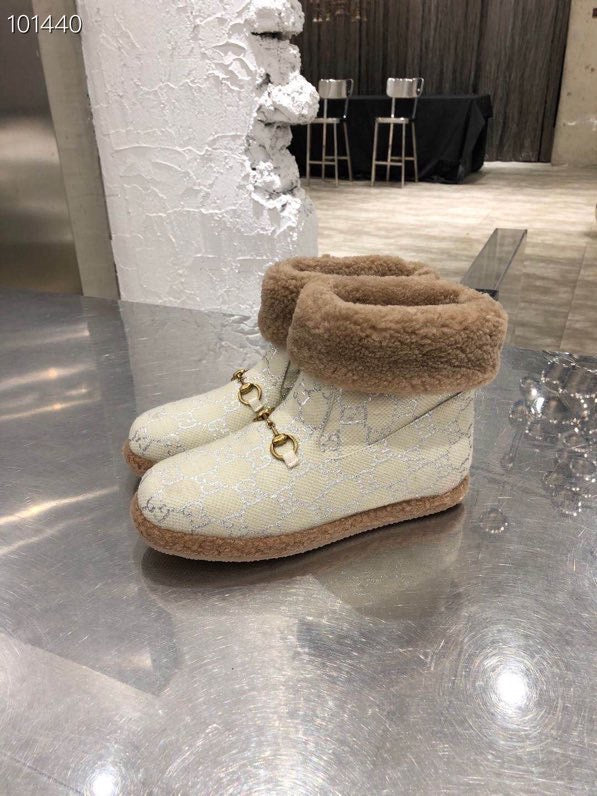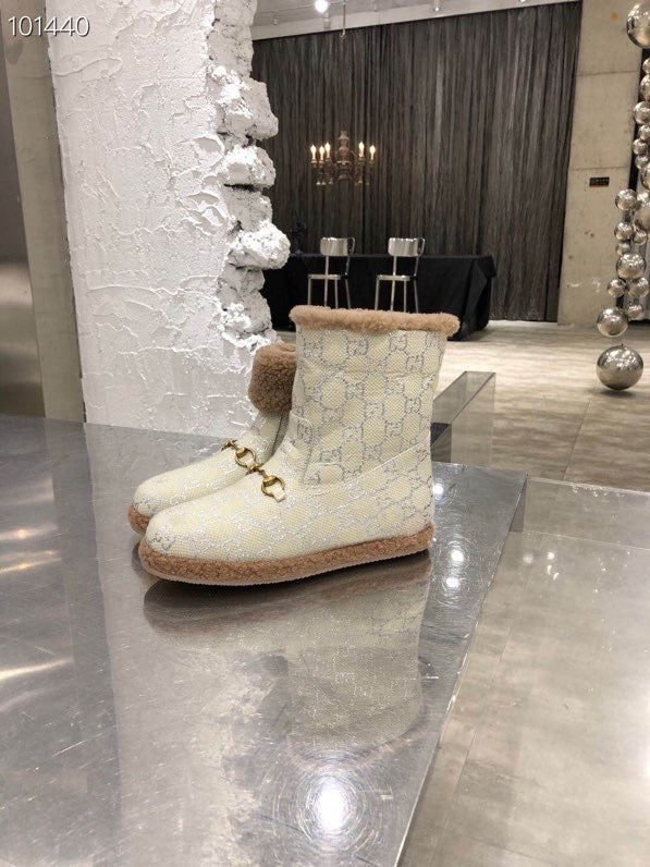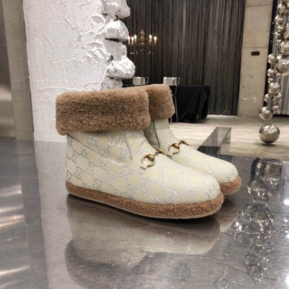 GG Horsebit Snow Cream Brown Woolen Fabric Fleece 576255