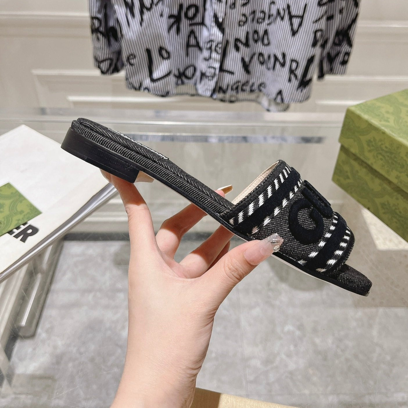 GG Interlocking double G hollow slippers Black