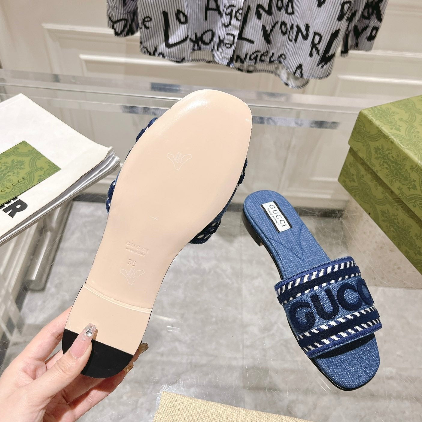 GG Interlocking double G hollow slippers Neon Blue