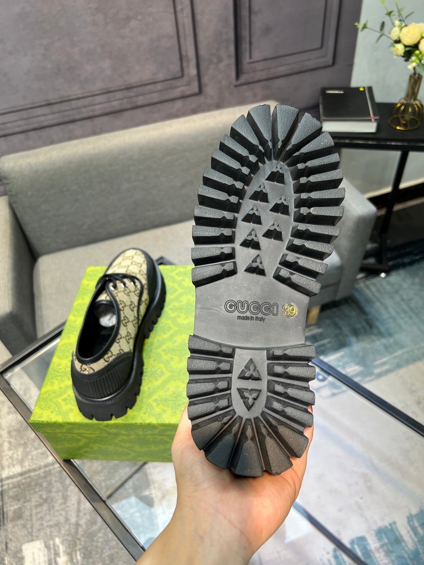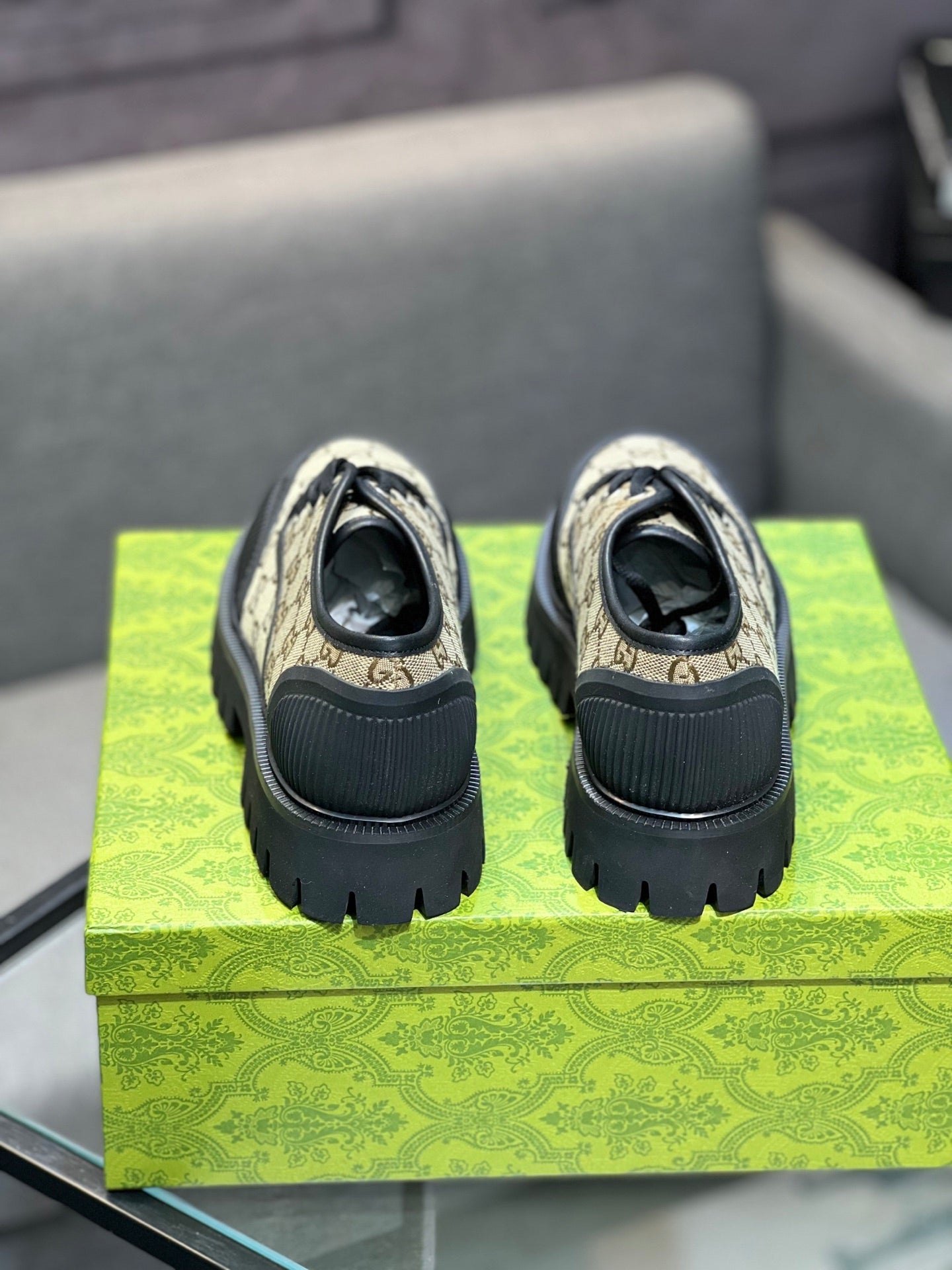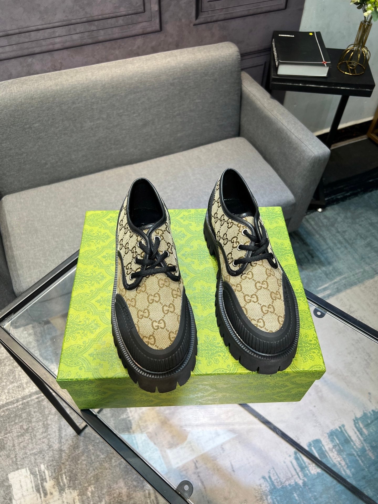 GG Men's 25 Maxi GG Lace up Sneaker Brown Black Cowhide