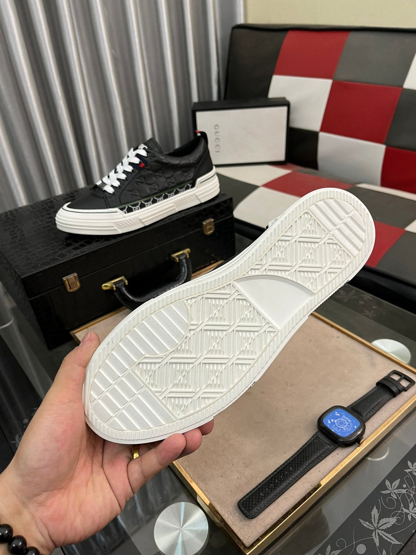 GG Men's ACE Sneaker Black Embossed Cowhide 832403