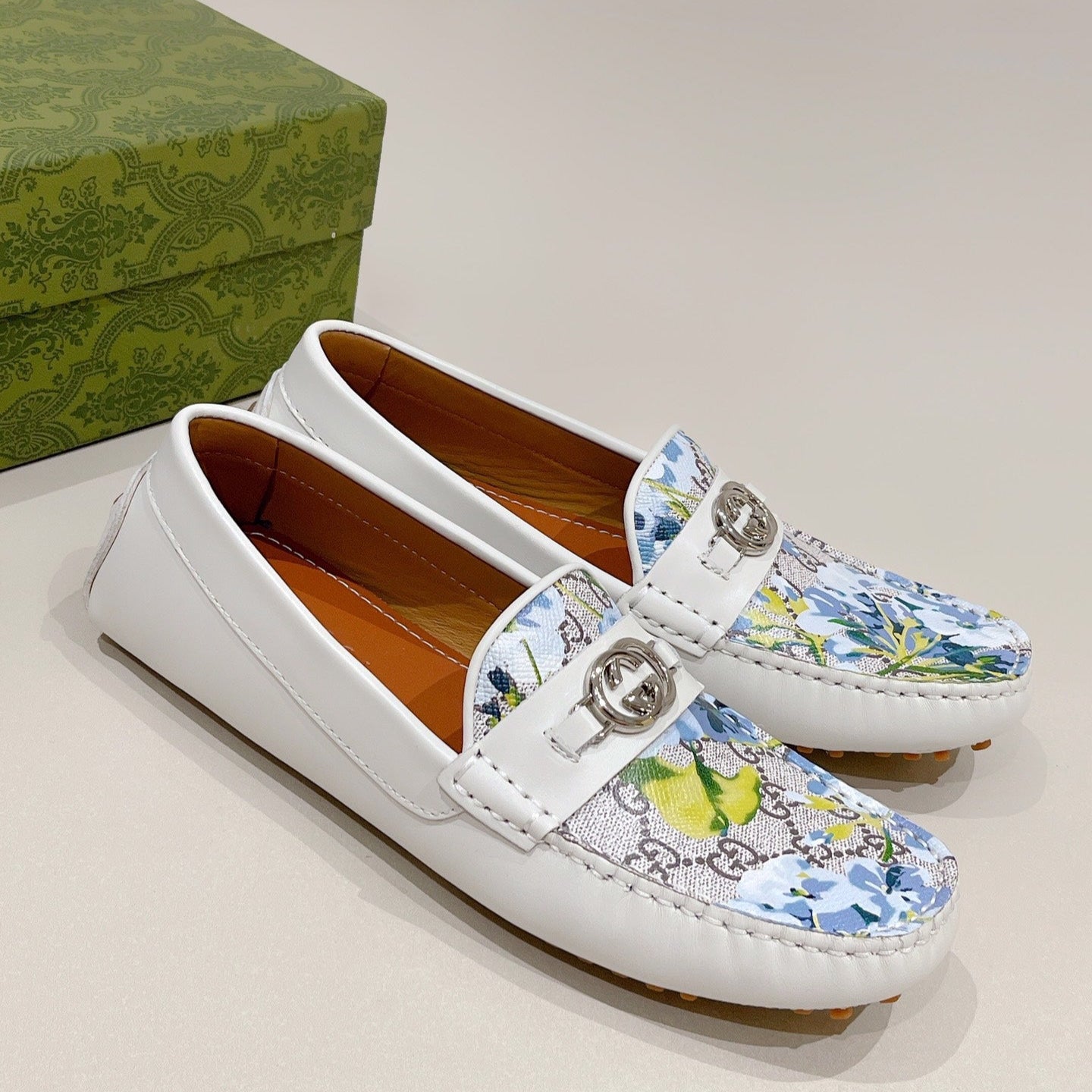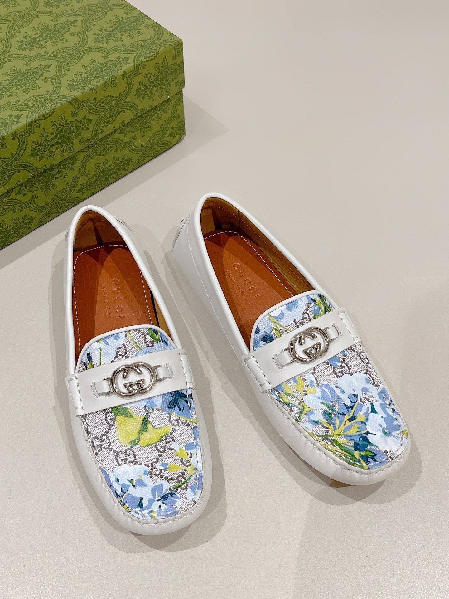GG Men's Flower Loafer White Calfskin 561760