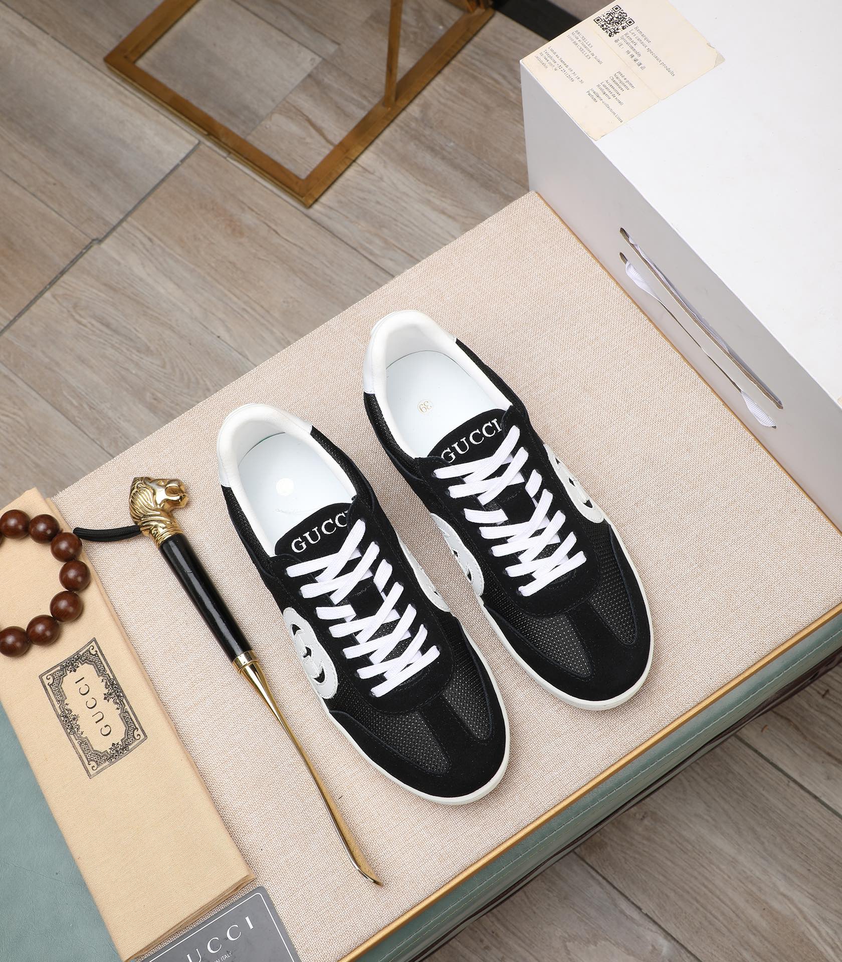 GG Men's G75 Sneaker Black White Mesh Suede 477879