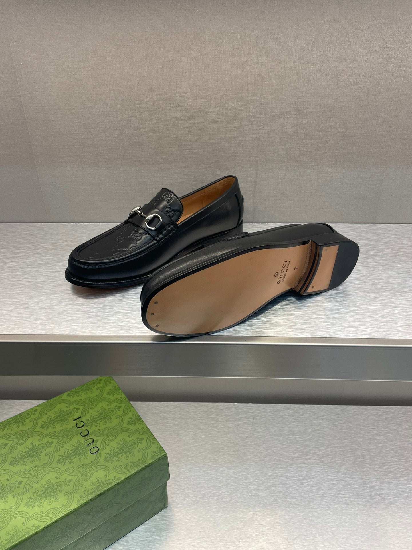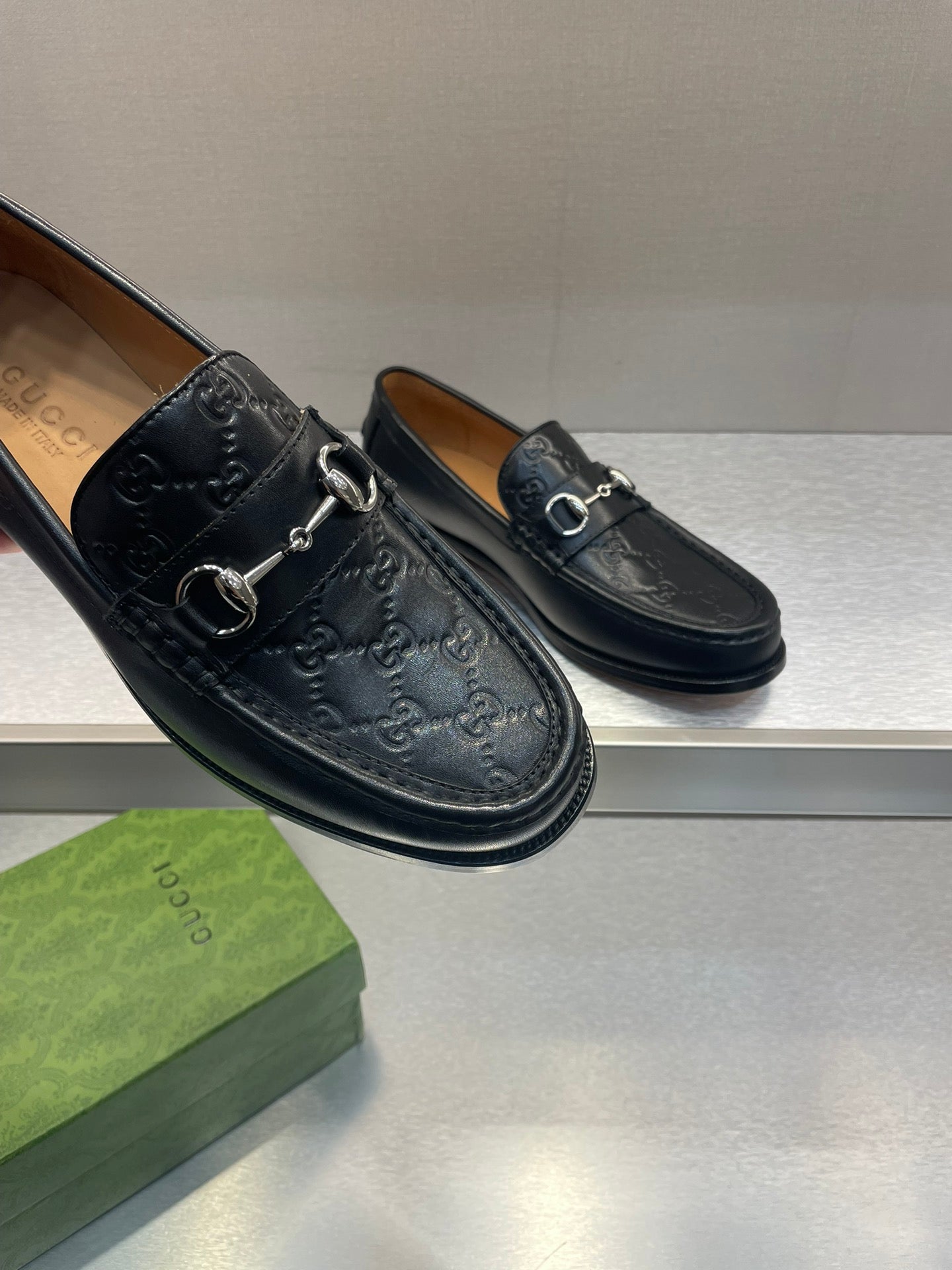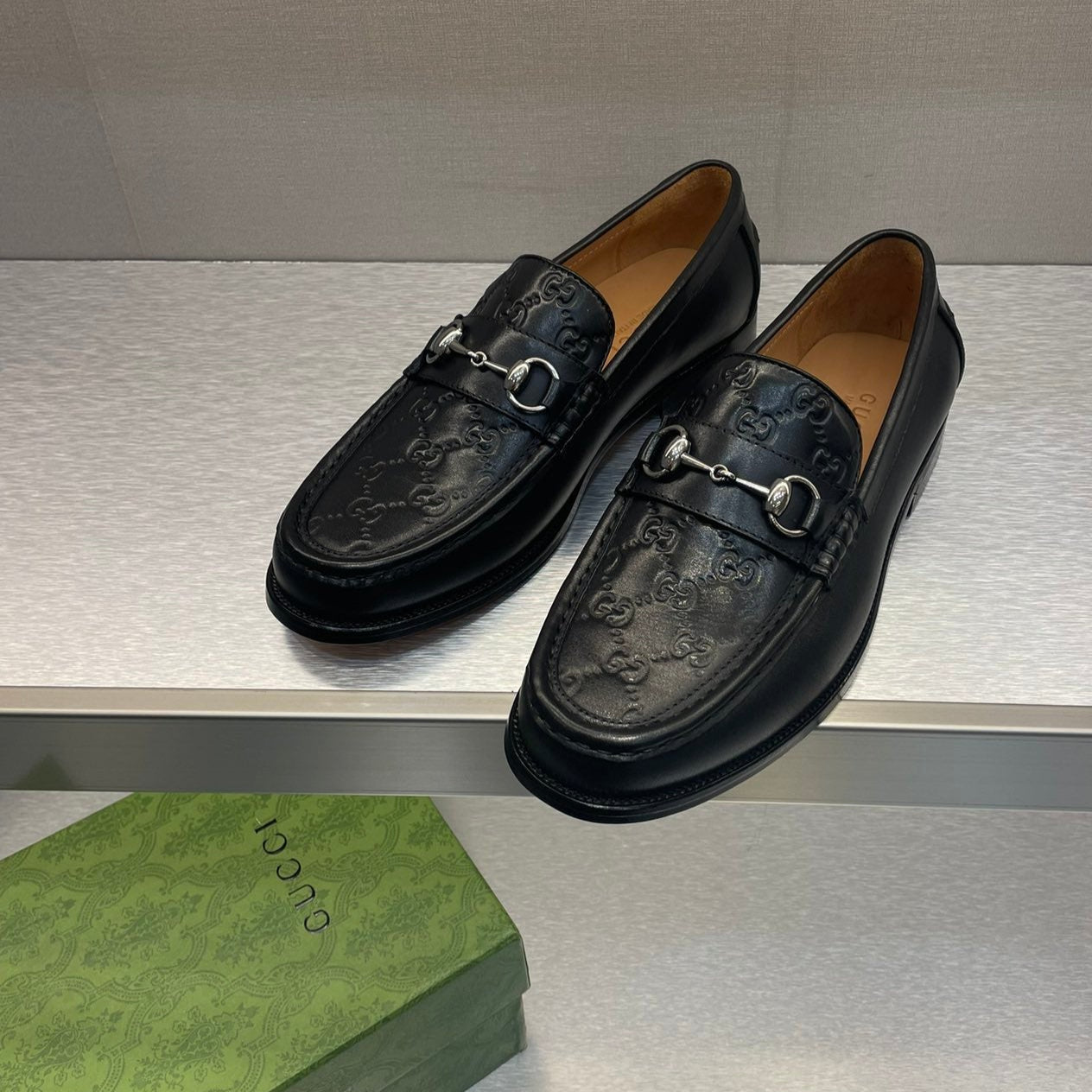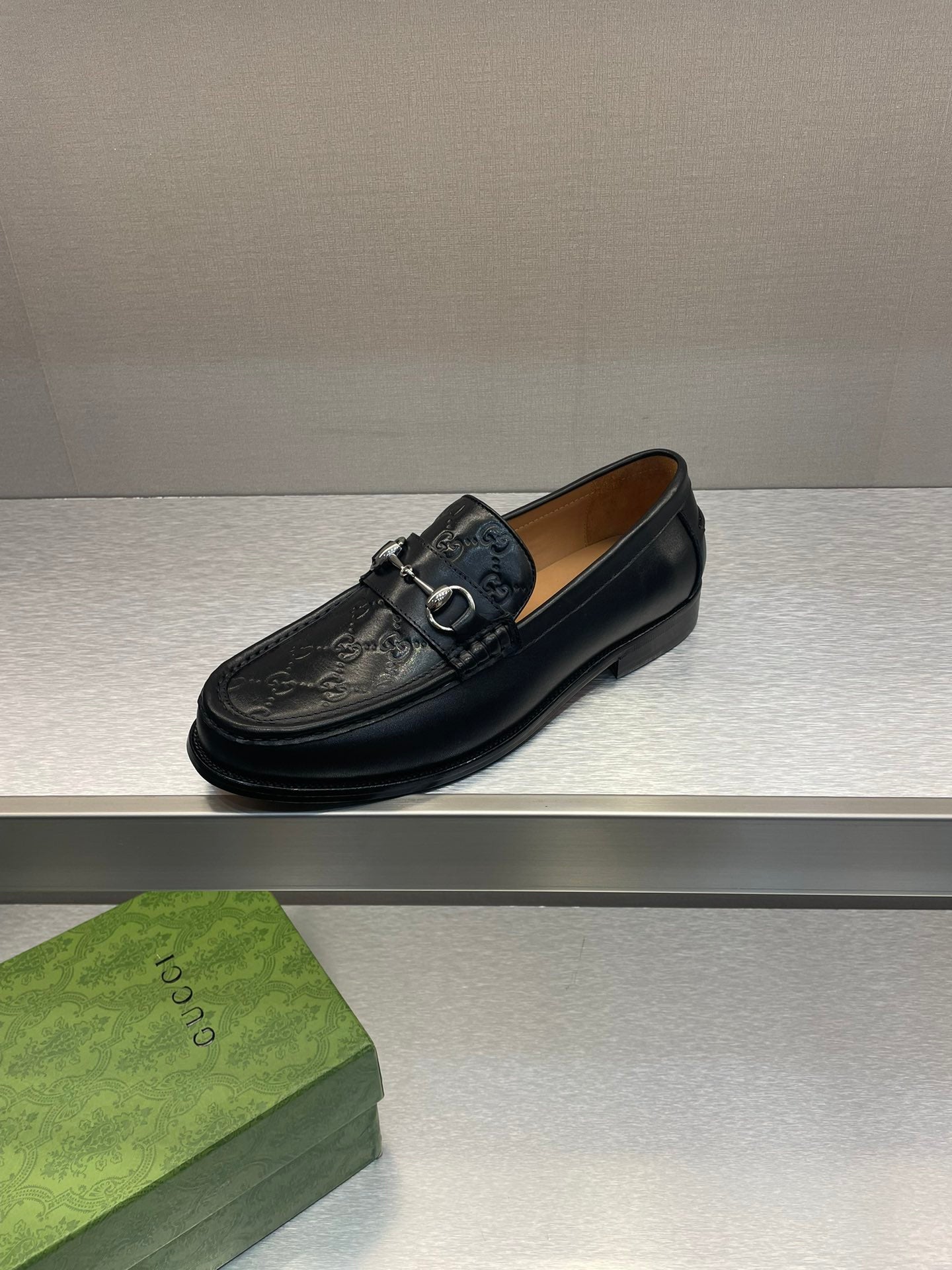GG Men's Horsebit Loafer Black Embossed Cowhide 542447