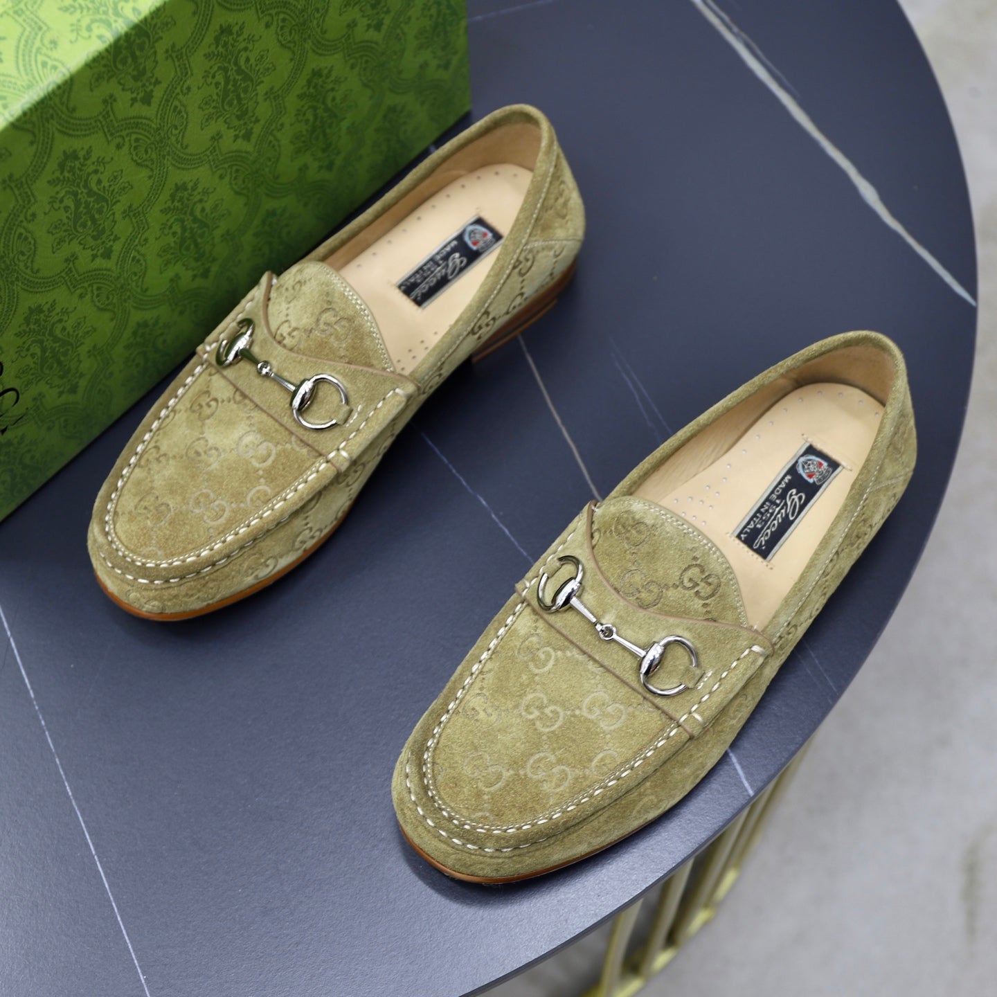 GG Men's Horsebit Loafer Olive Green Suede 600394