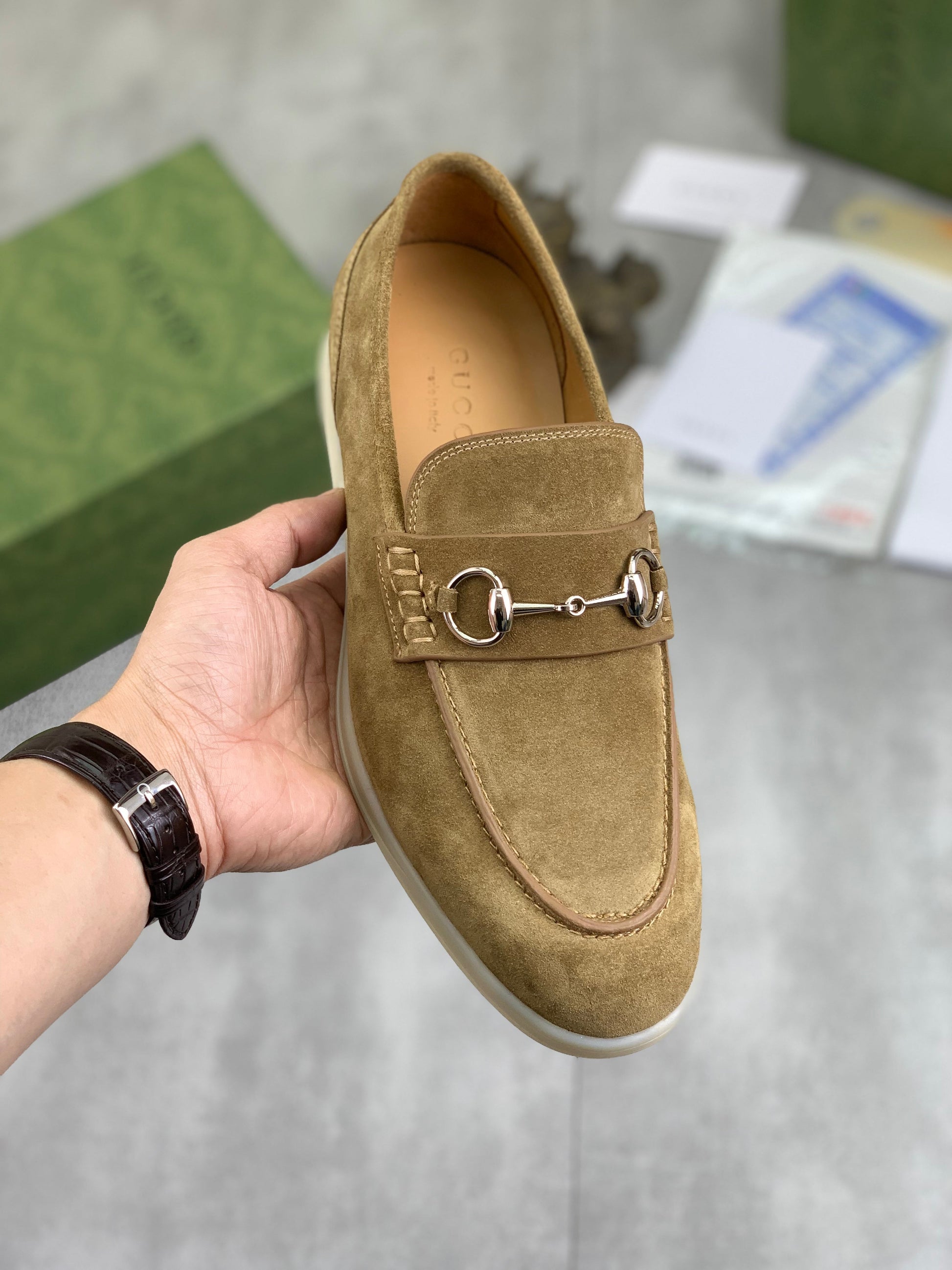 GG Men's Horsebit Loafer Tan Suede 524775