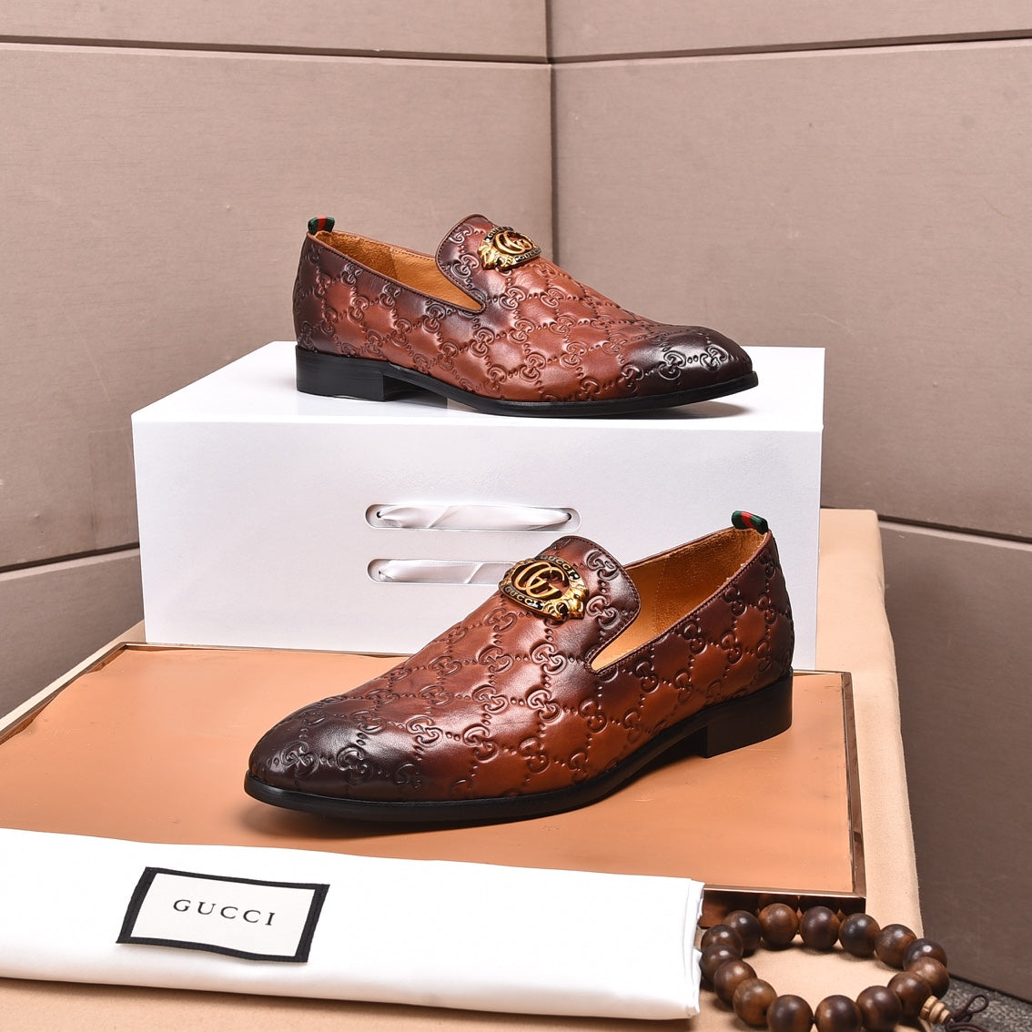GG Men's Interlocking GG Loafer Brown Embossed Cowhide 480402