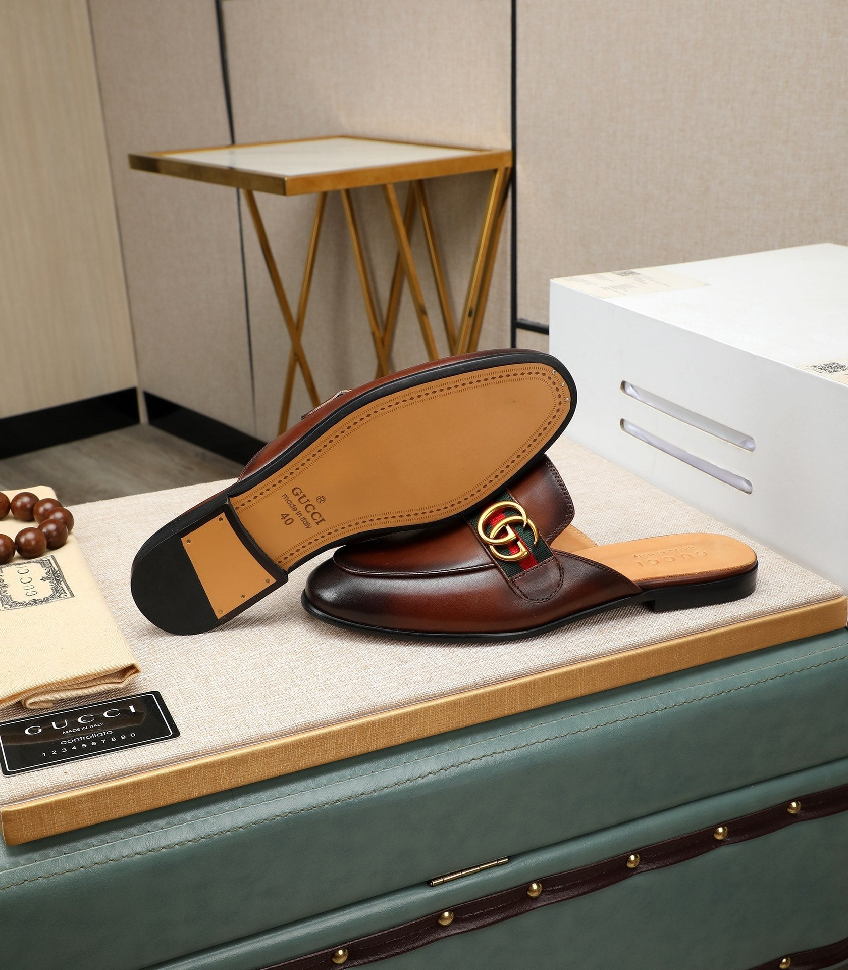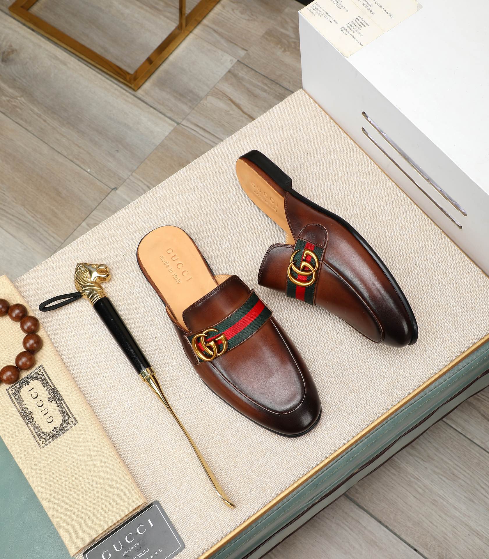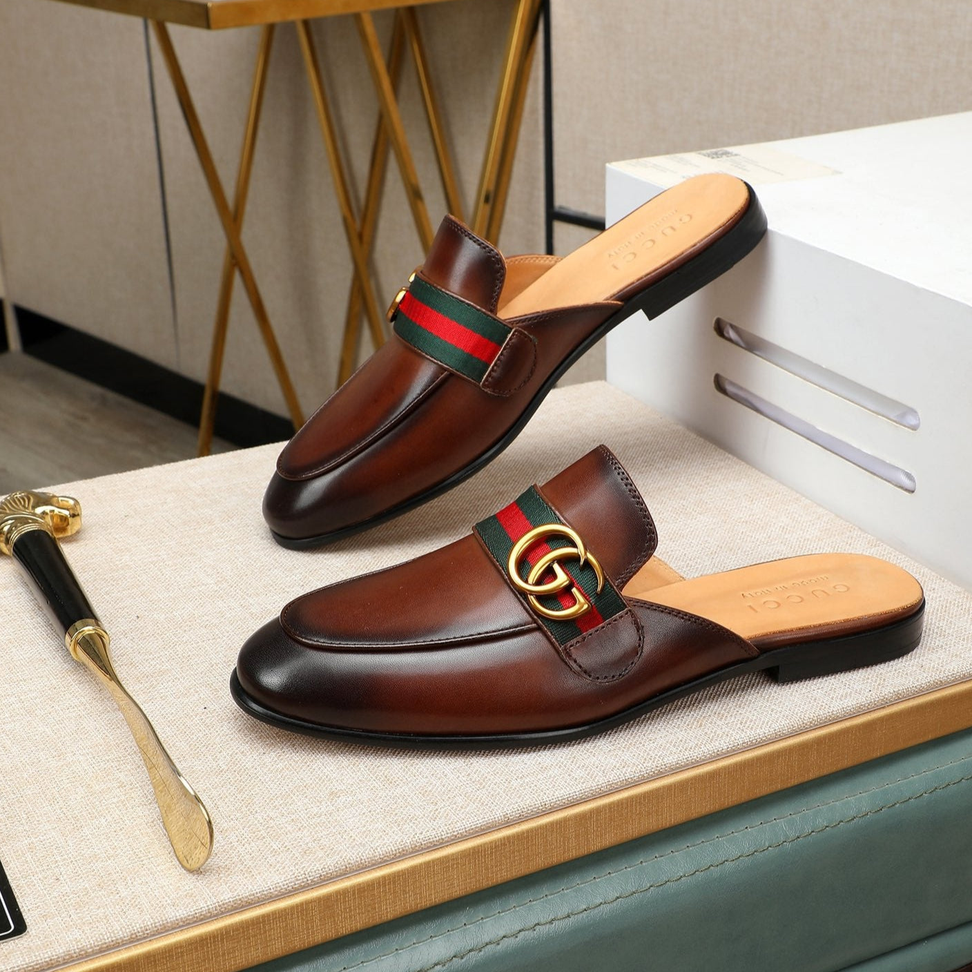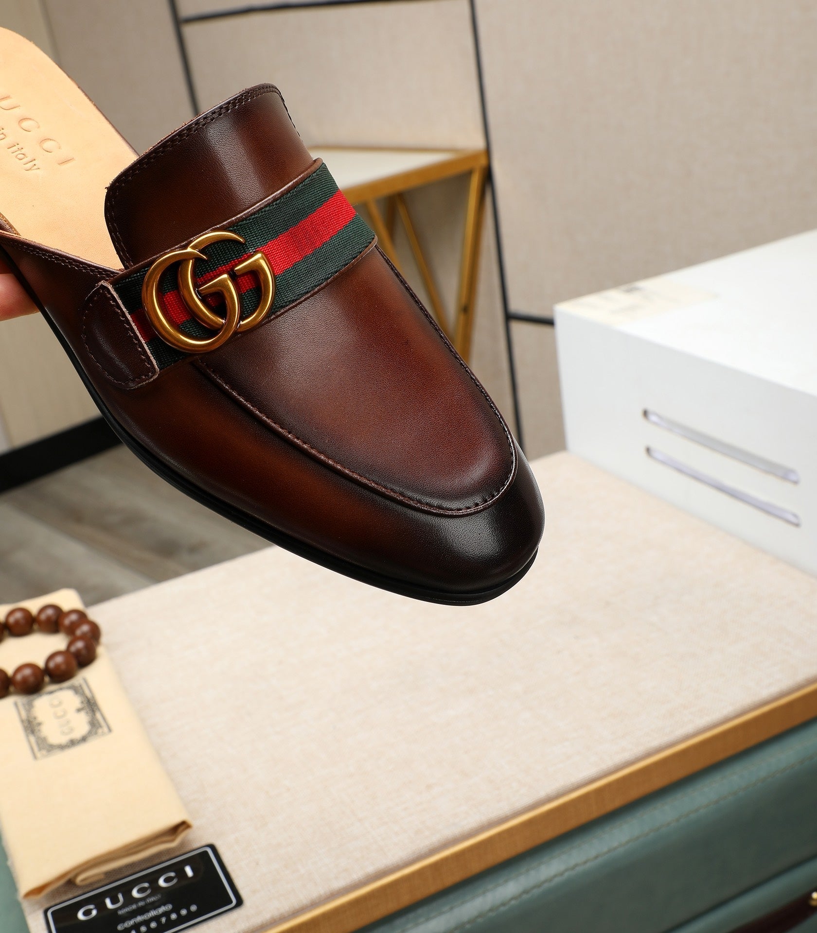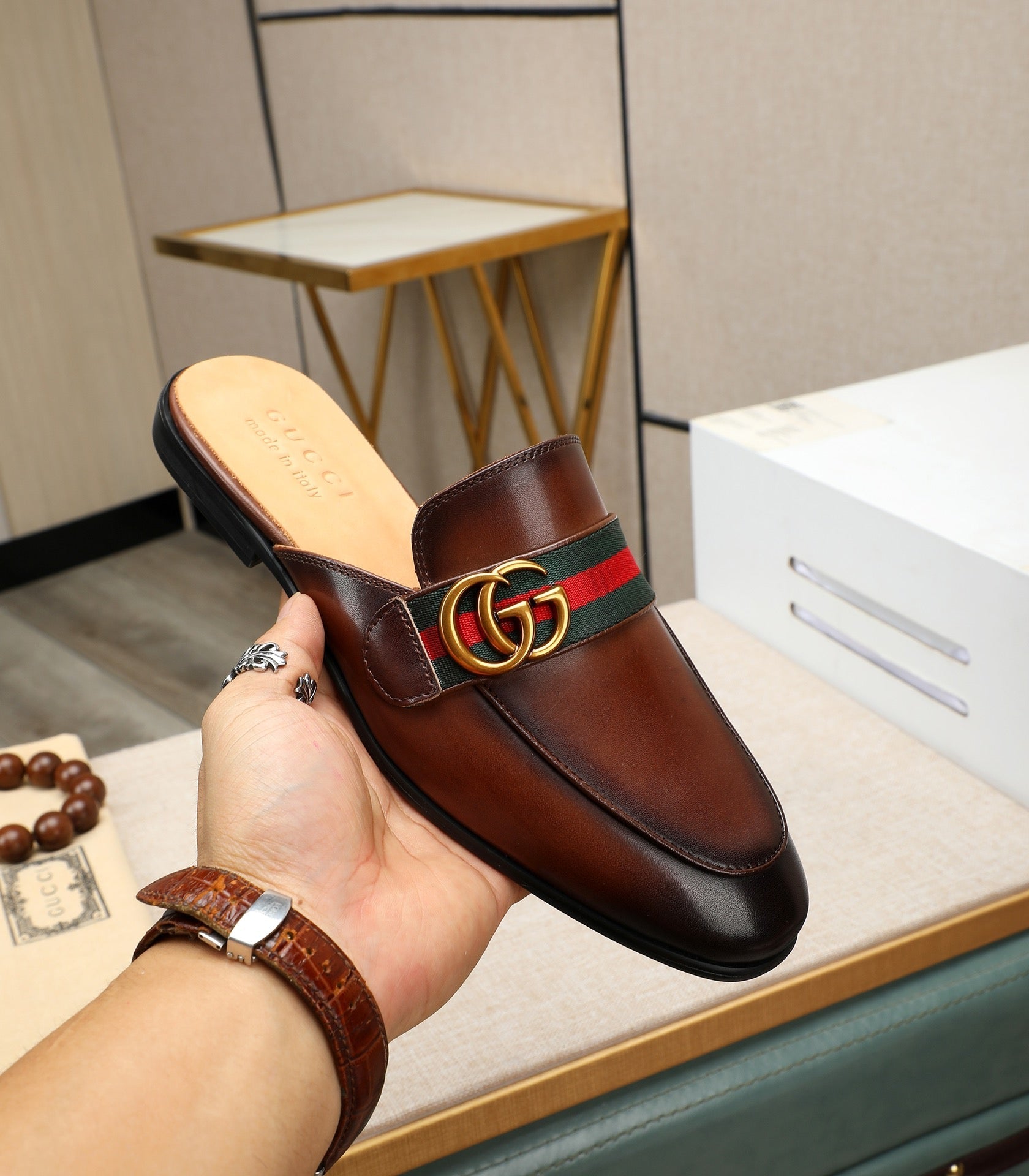GG Men's Interlocking GG Mule Brown Cowhide 111484