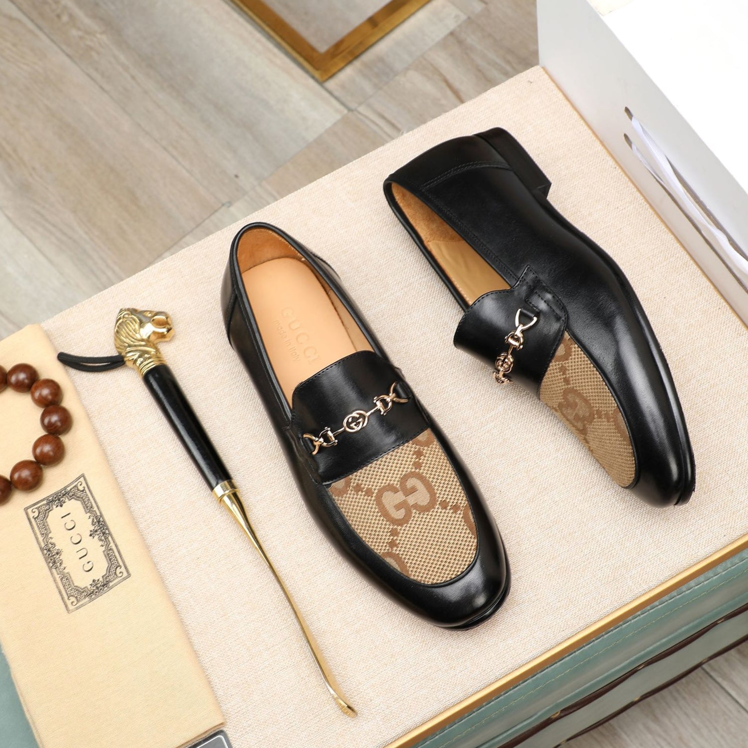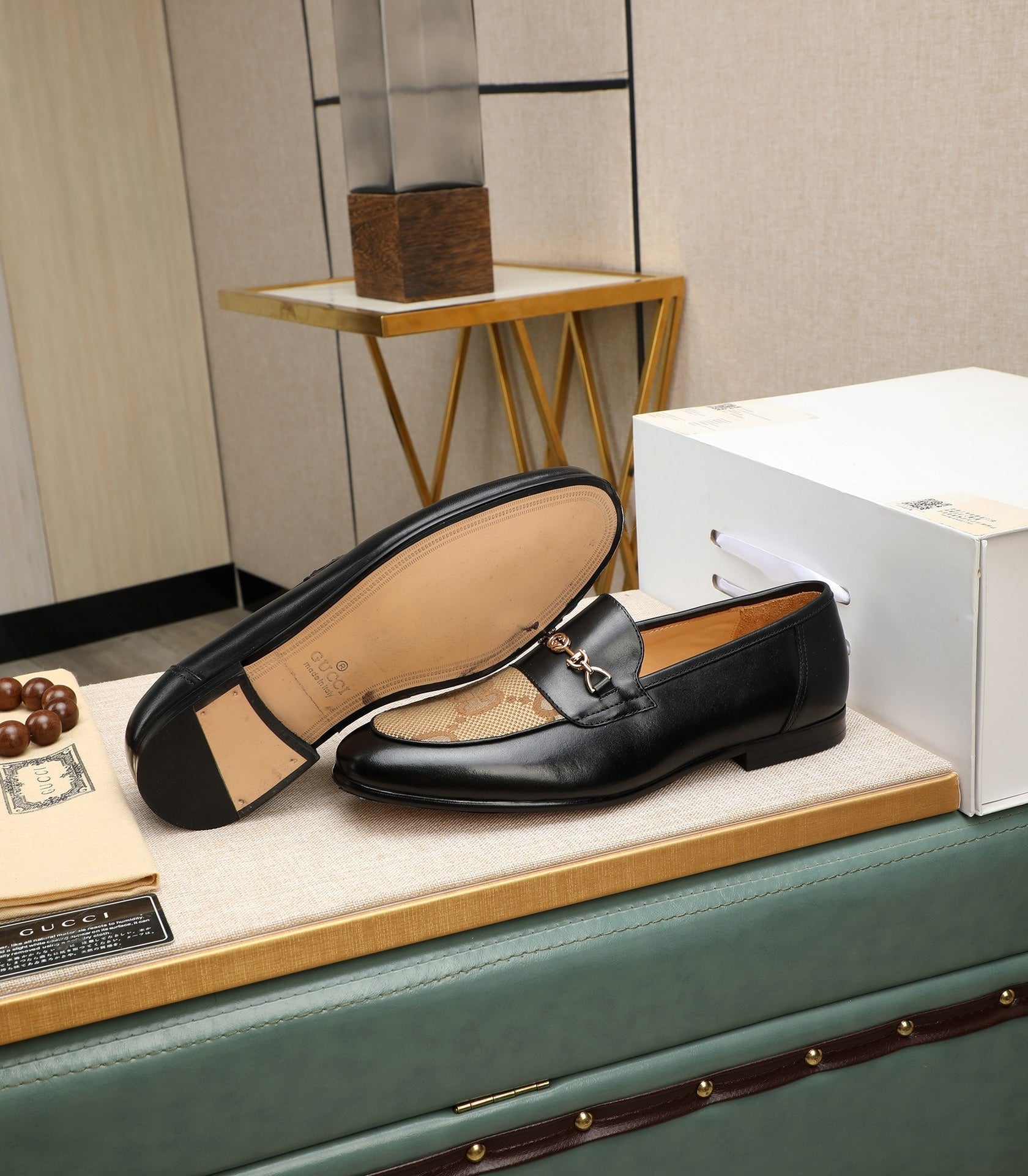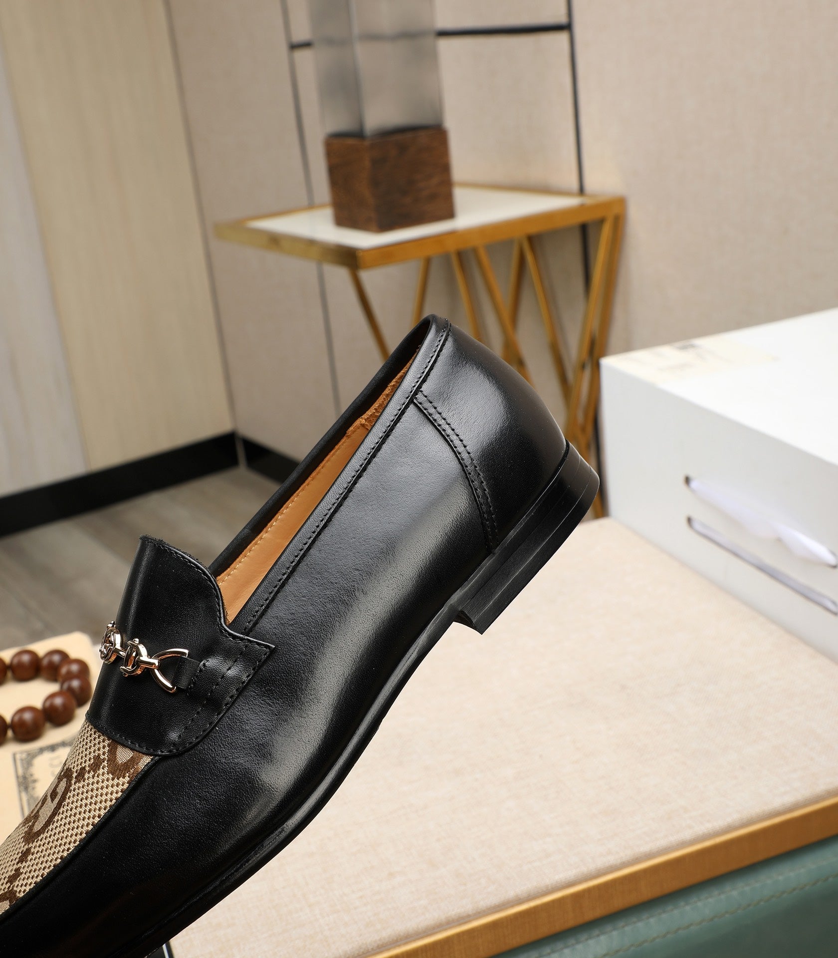 GG Men's Loafer Black Brown Cowhide Canvas 526012