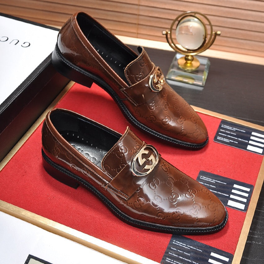GG Men's Loafer Brown Embossed Cowhide 484786