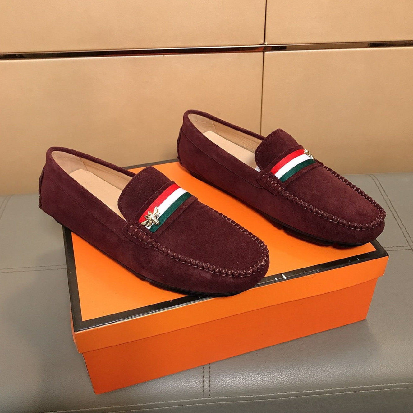 GG Men's Loafer Wine Red Suede 526675