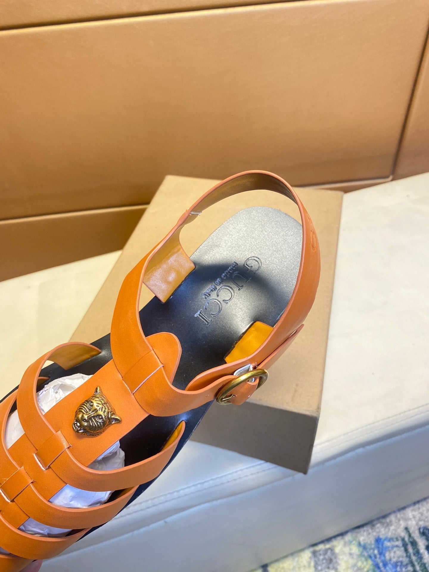 GG Men's Sandals Orange Cowhide 743279