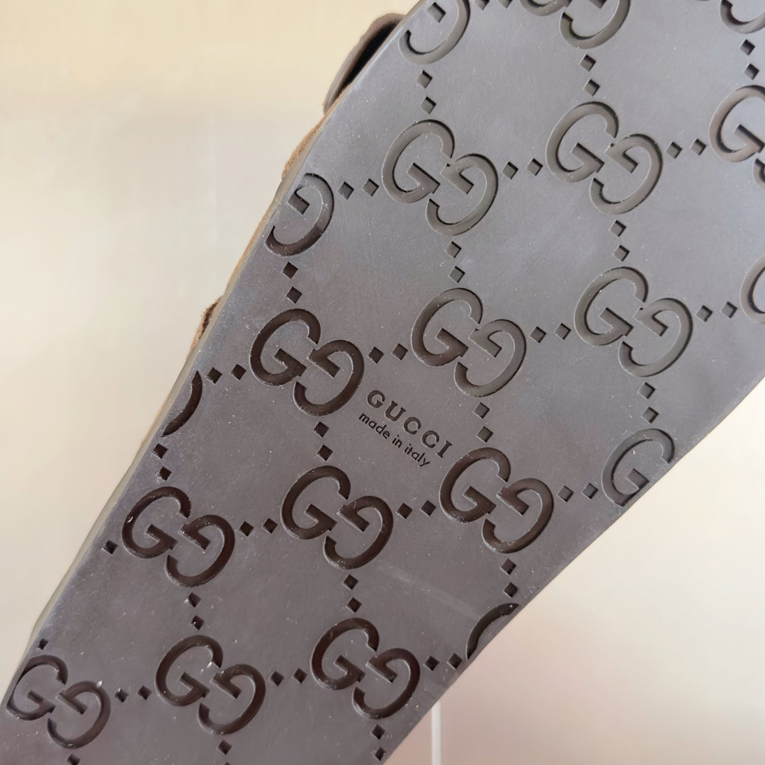 GG Men's Sandals Slide Brown Embossed Suede 595716