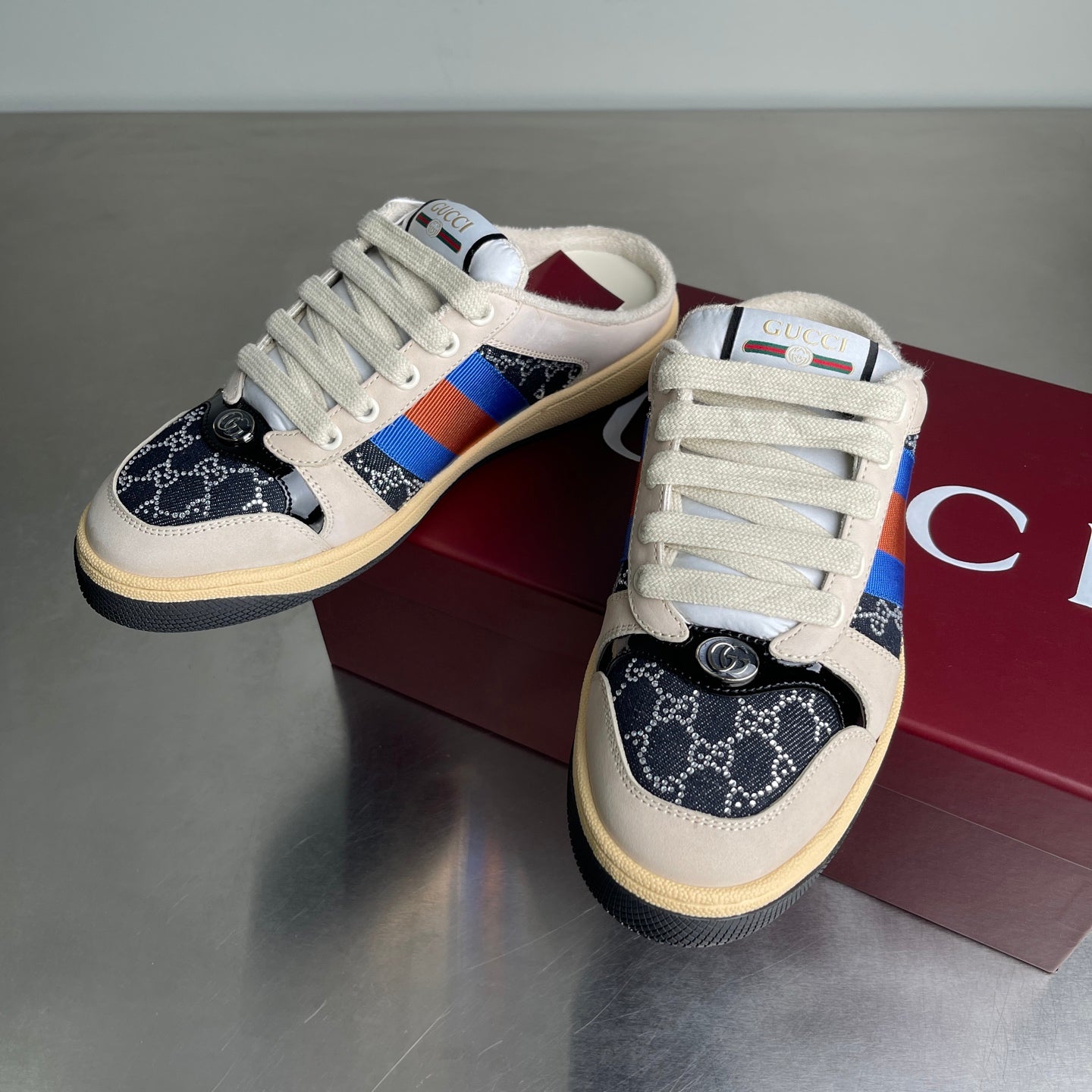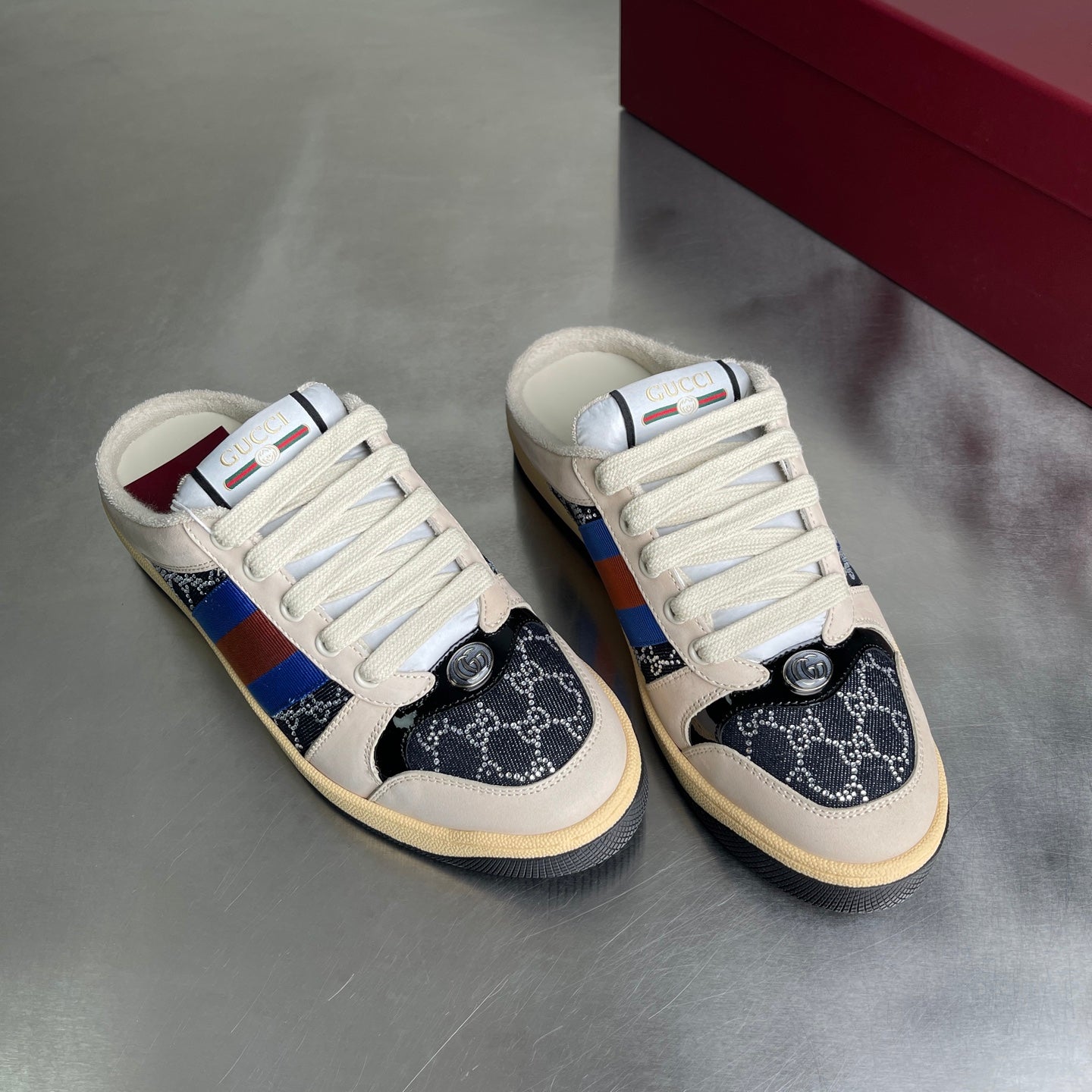 GG Men's Screener Mules Black Suede Denim 722595