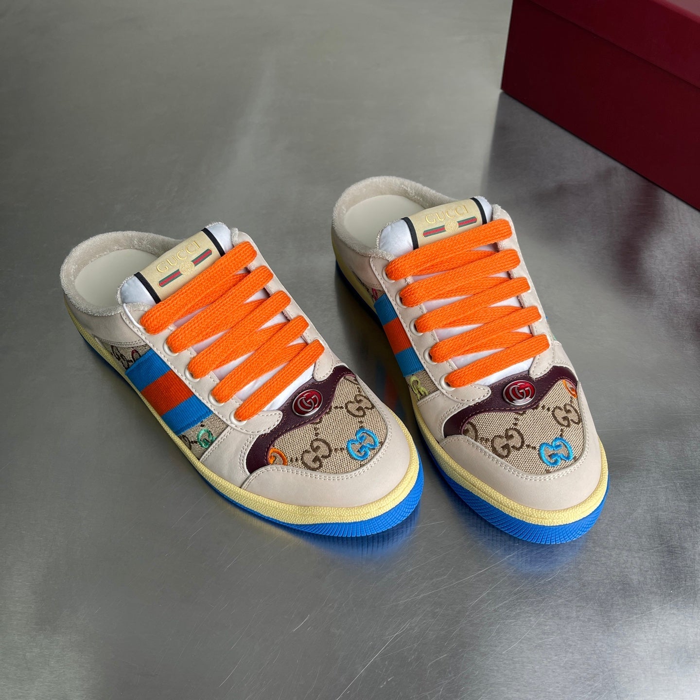 GG Men's Screener Mules Multicolor Suede Denim 722596