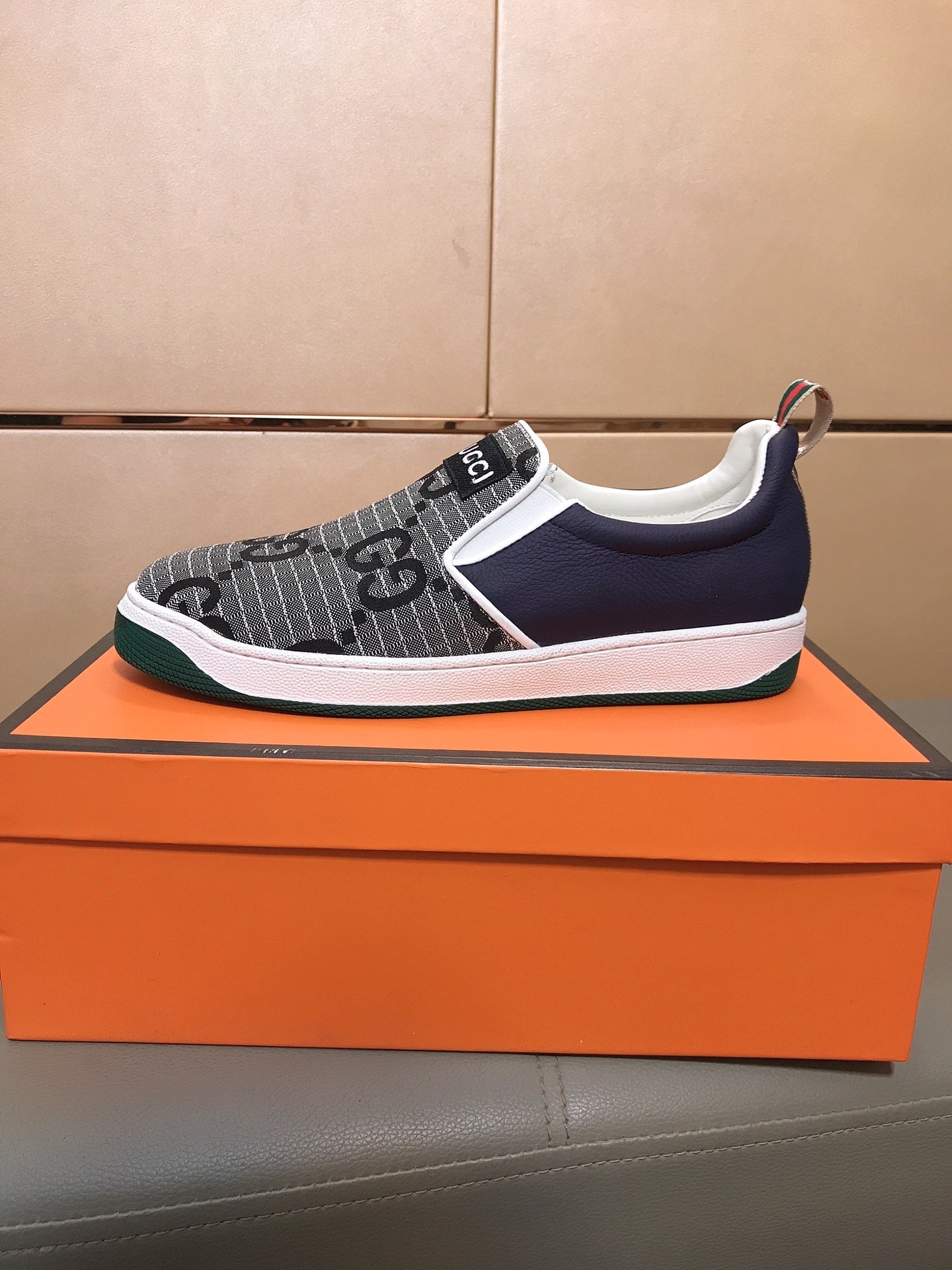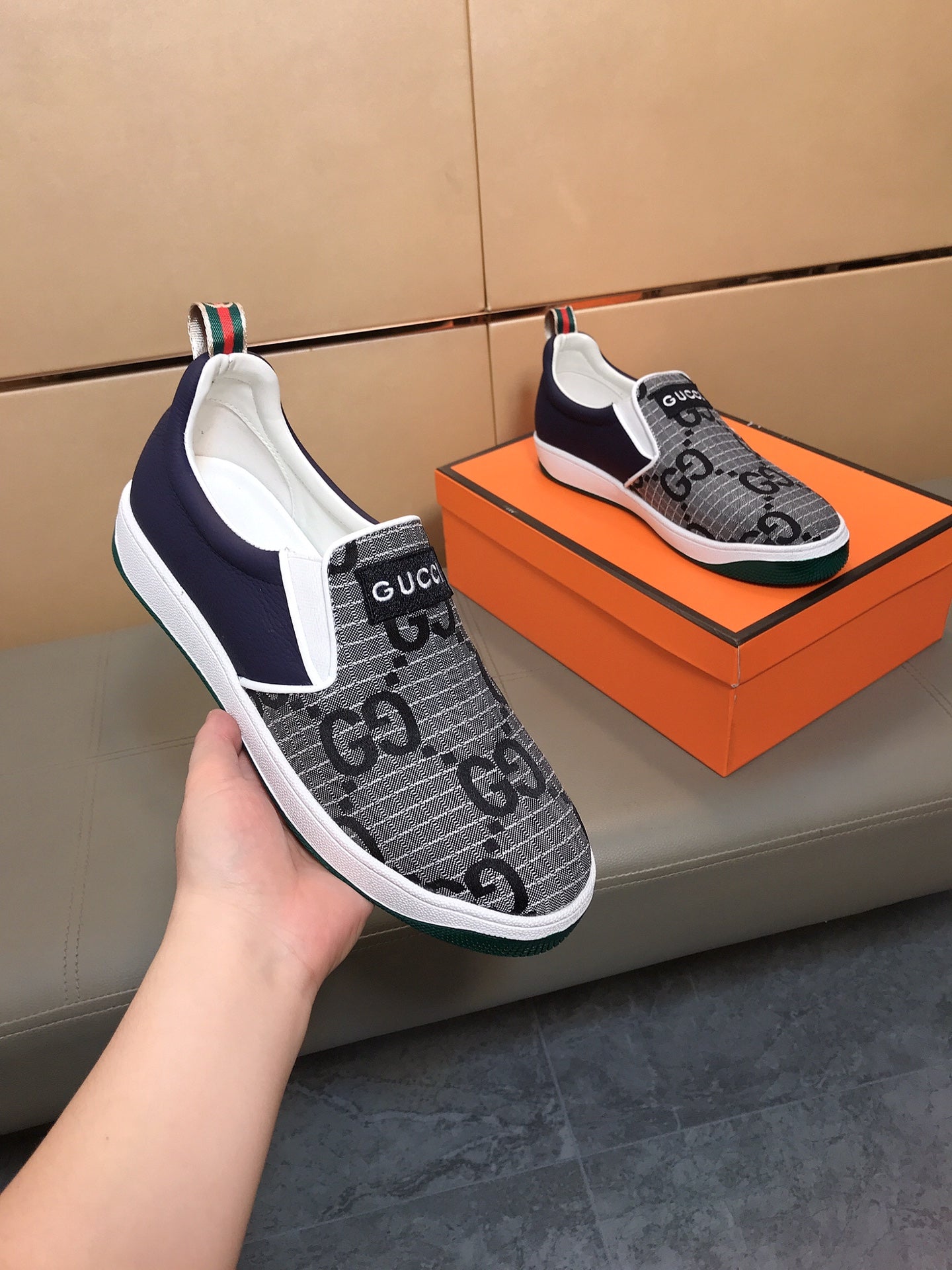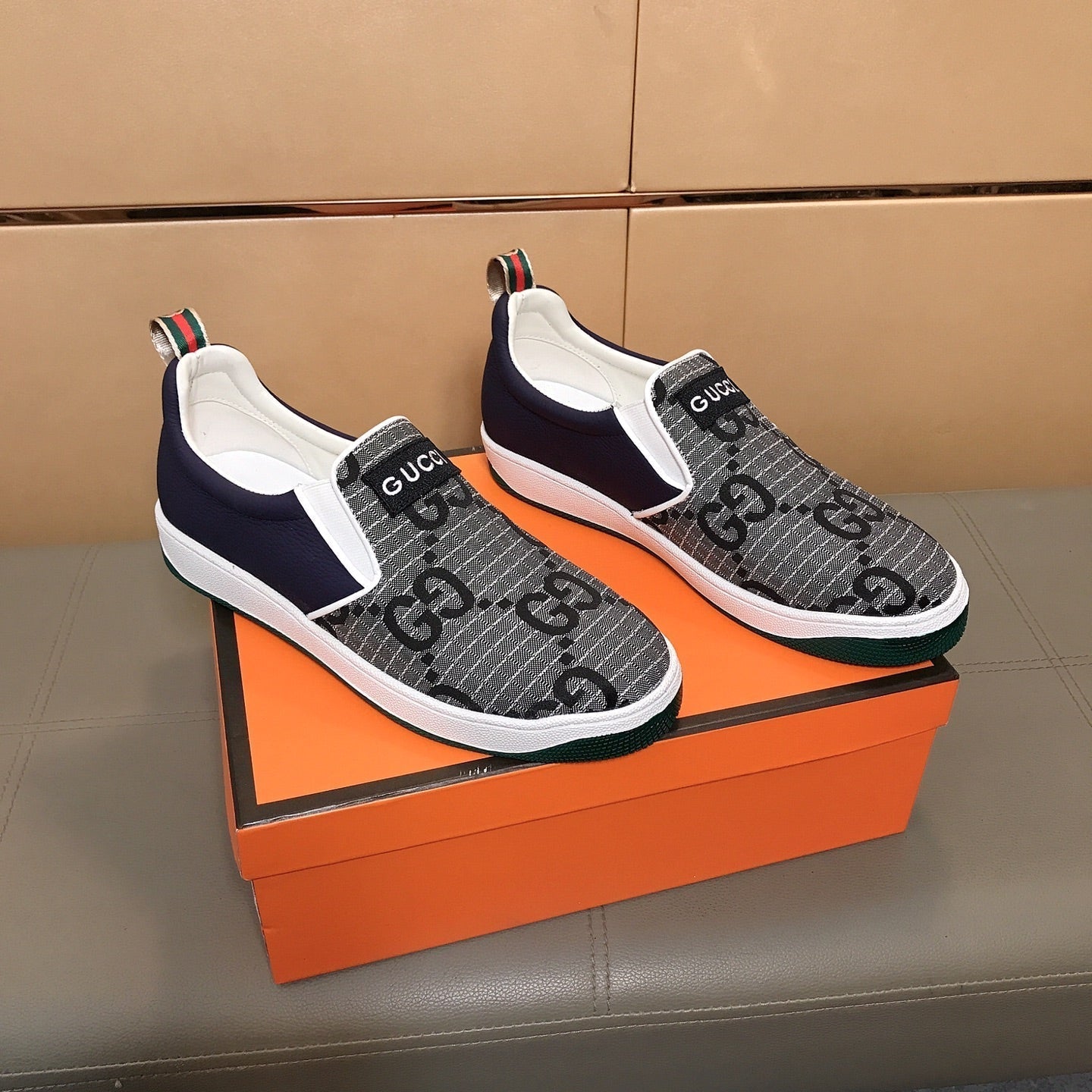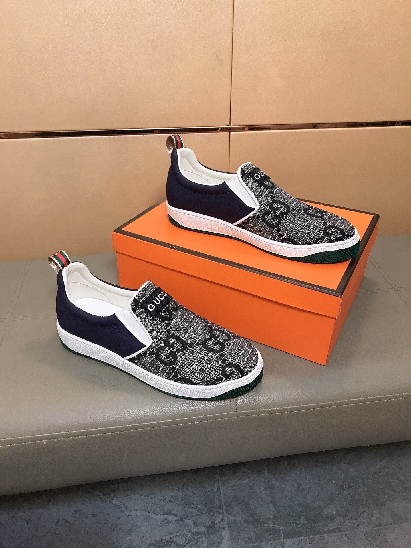 GG Men's Slip On Grey Cowhide Printed Fabric 525191