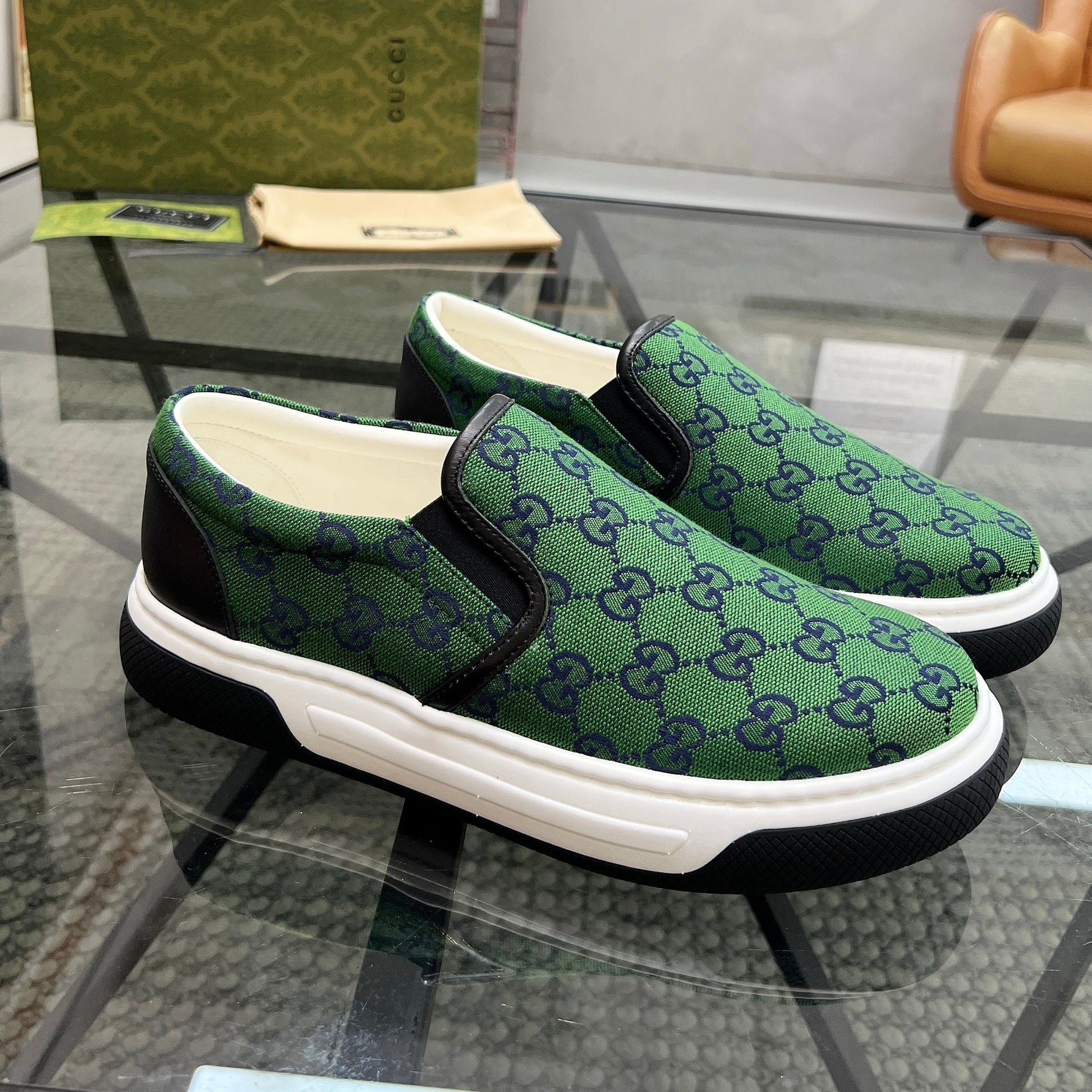 GG Men's Slip on Loafer Green Printed Fabric 721522