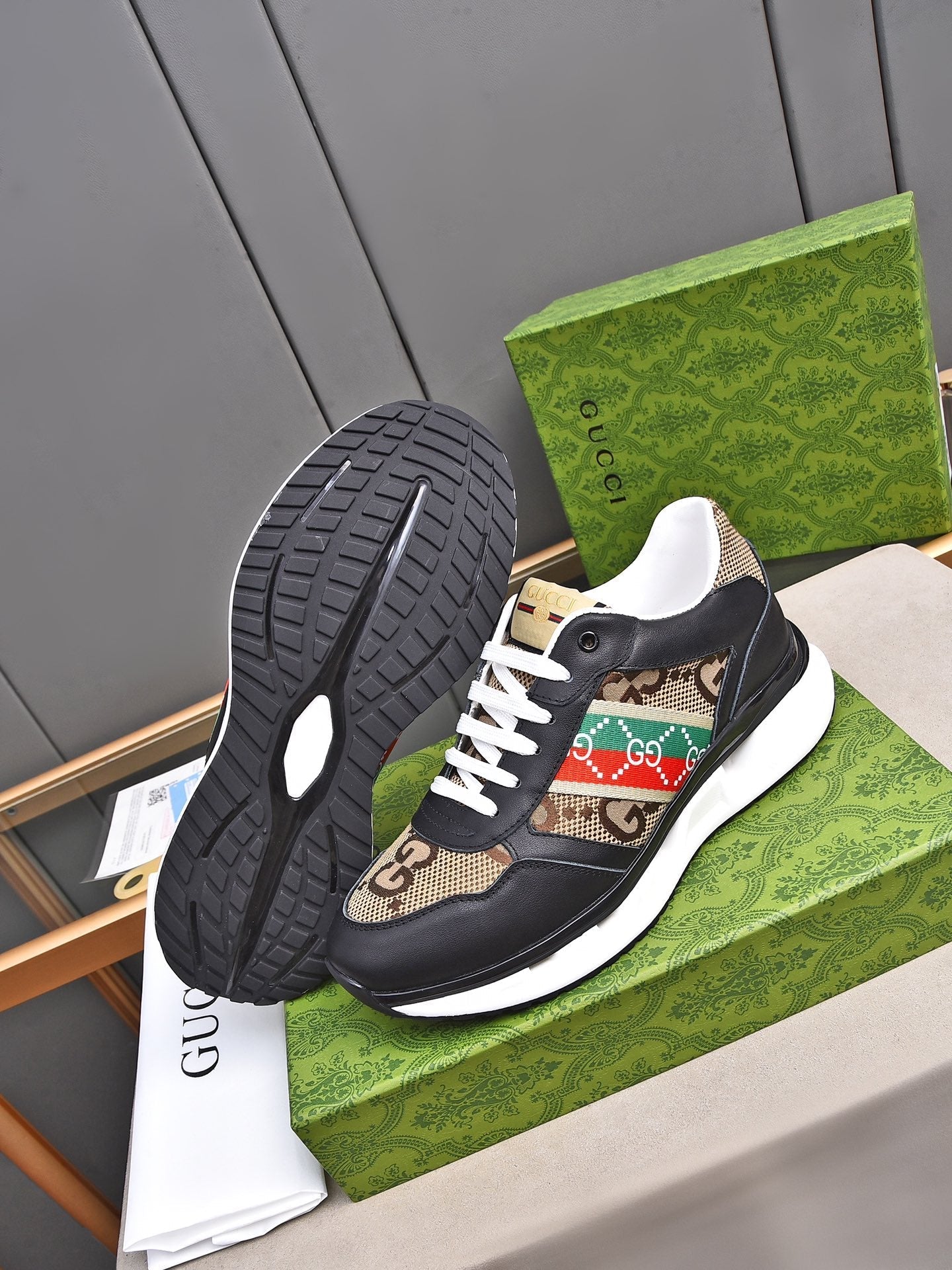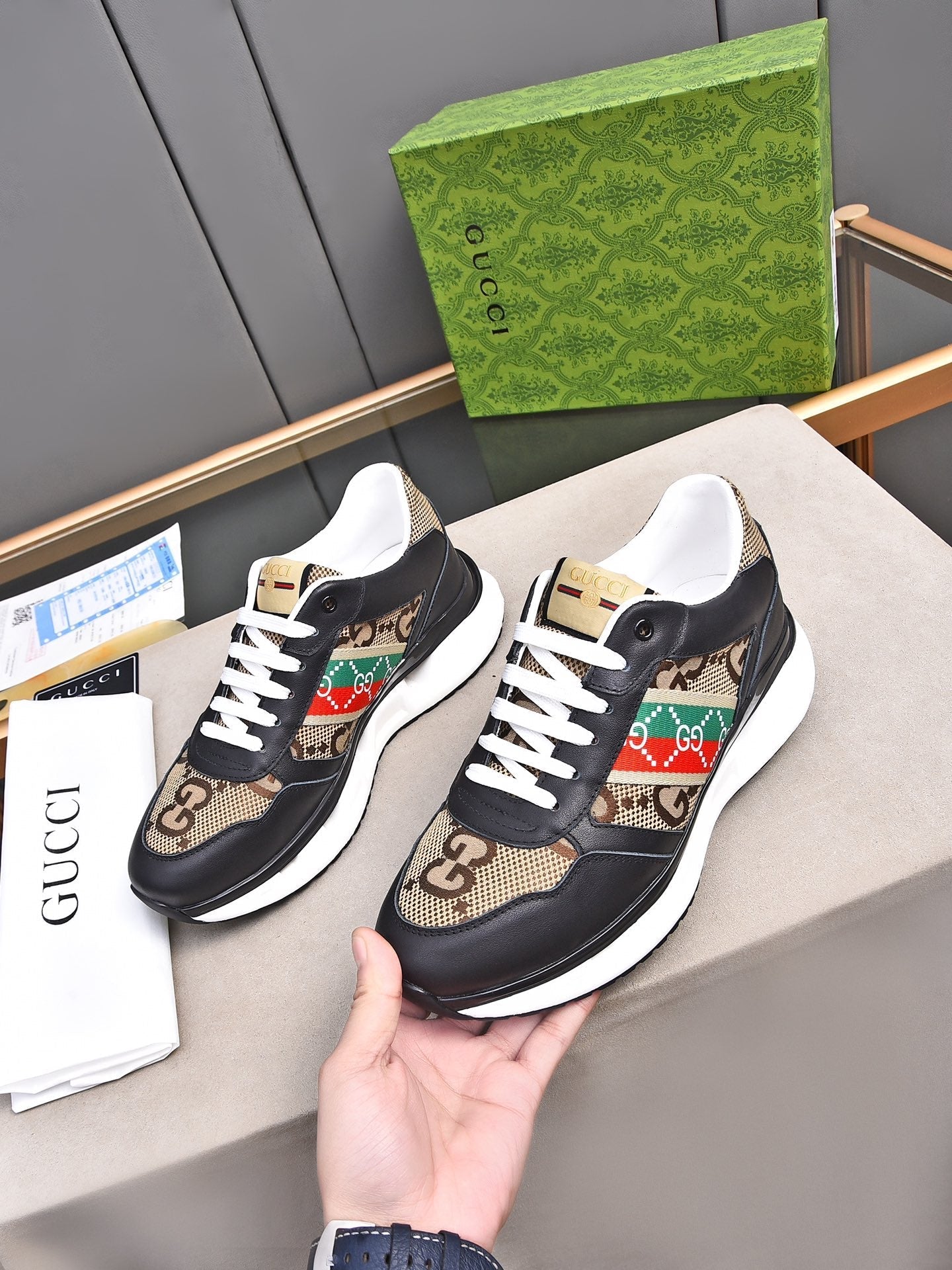 GG Men's Sneaker Black Brown Calfskin 522004