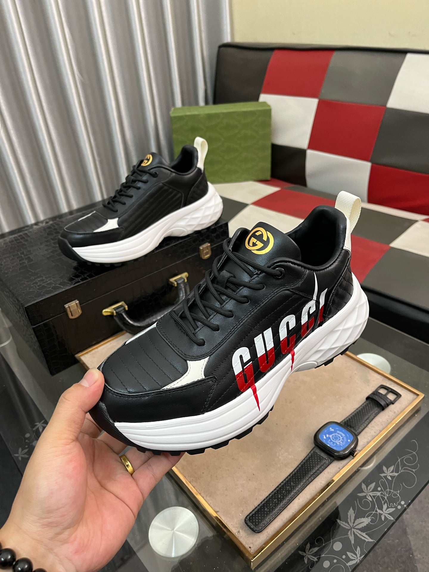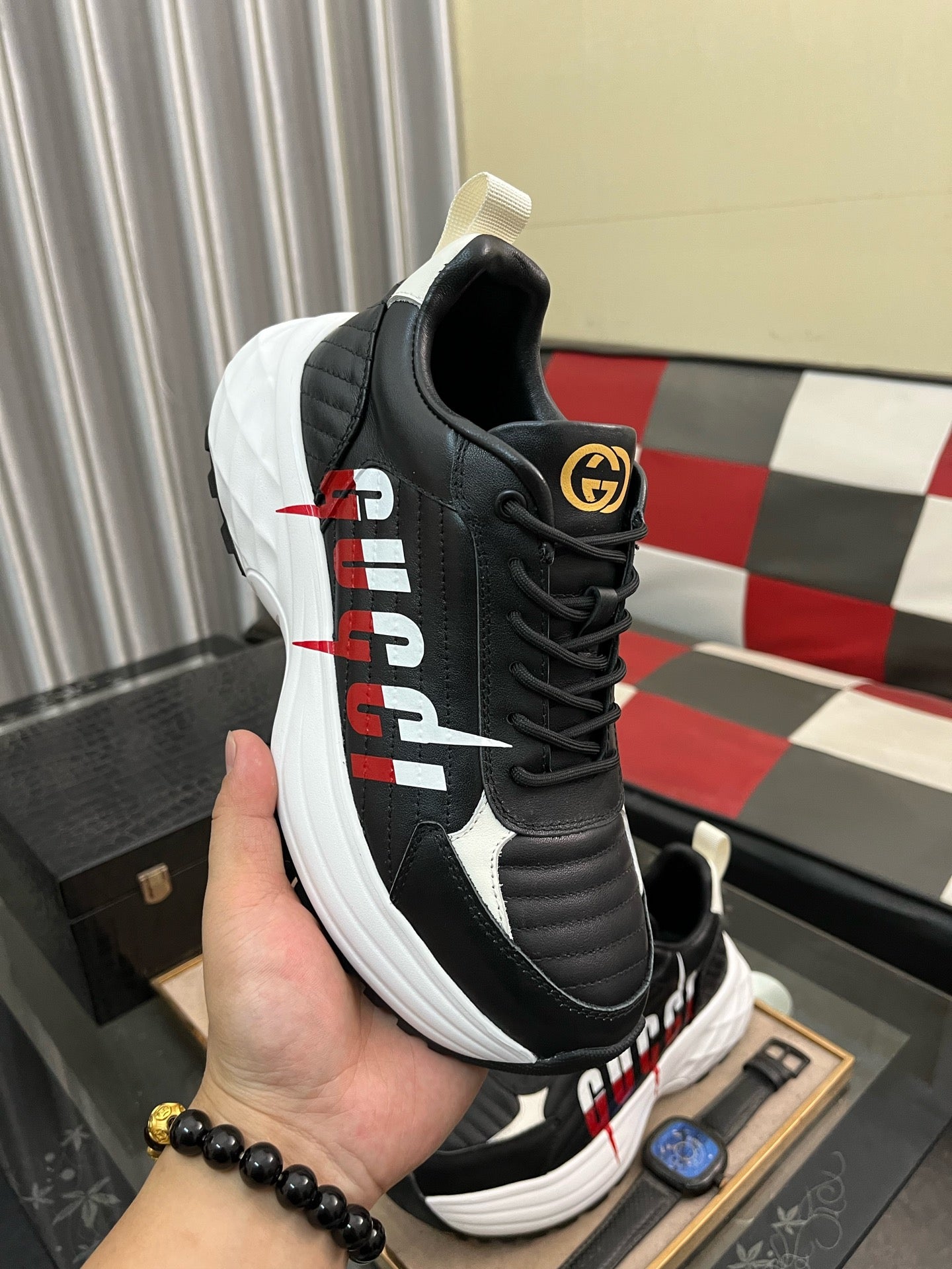 GG Men's Sneaker Black Cowhide 529928