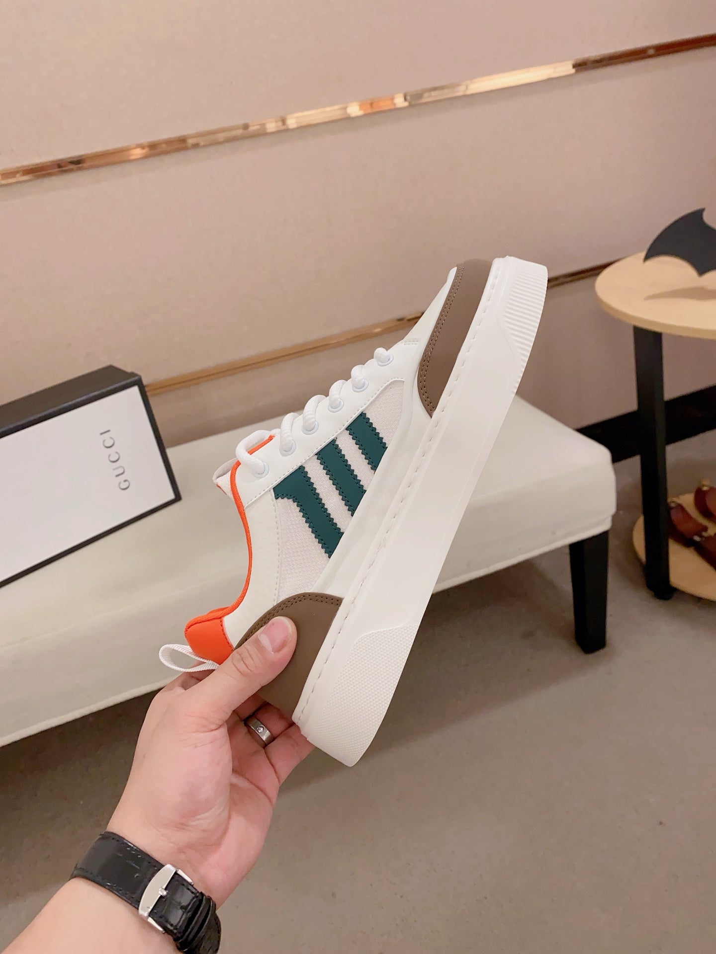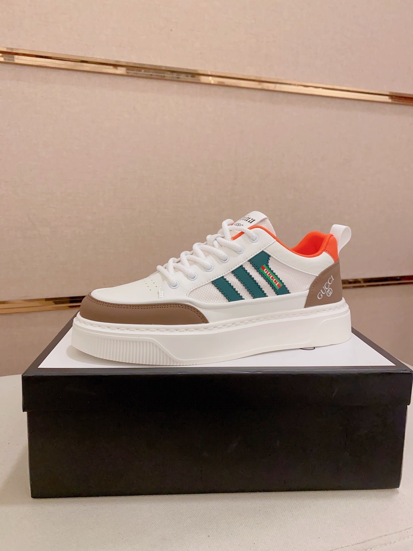 GG Men's Sneaker White Brown Cowhide 573328
