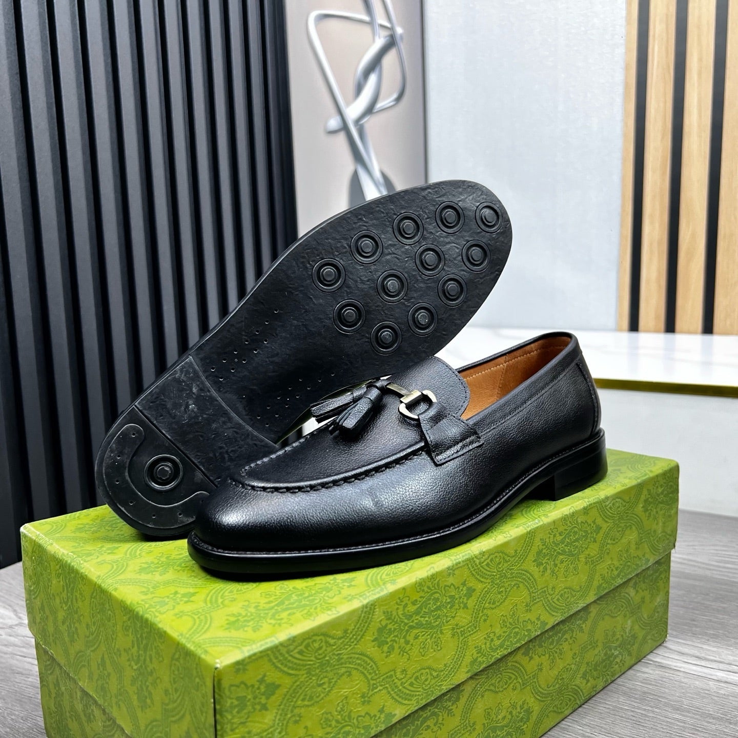 GG Men's Tassel Loafer Black Cowhide 531148