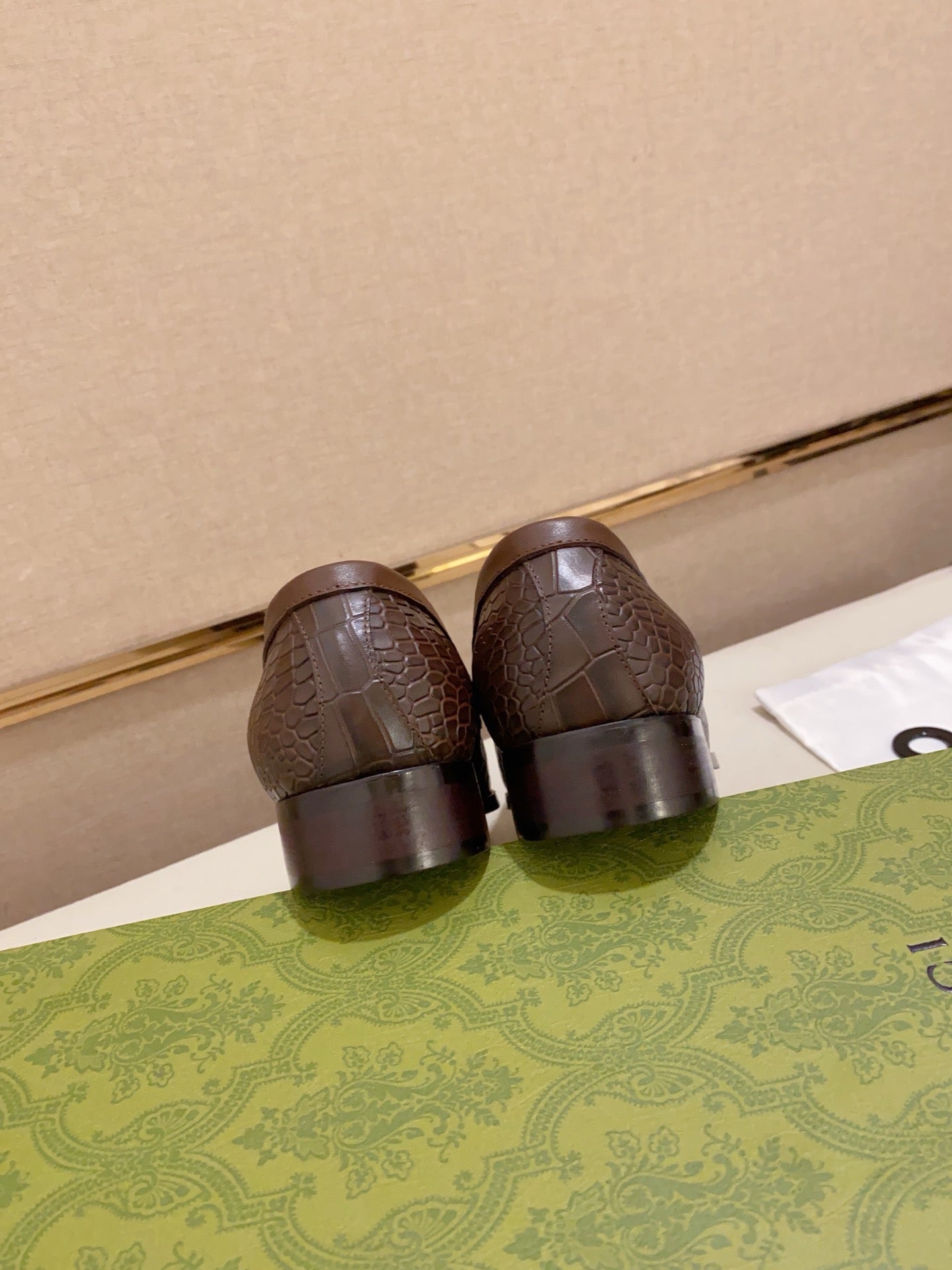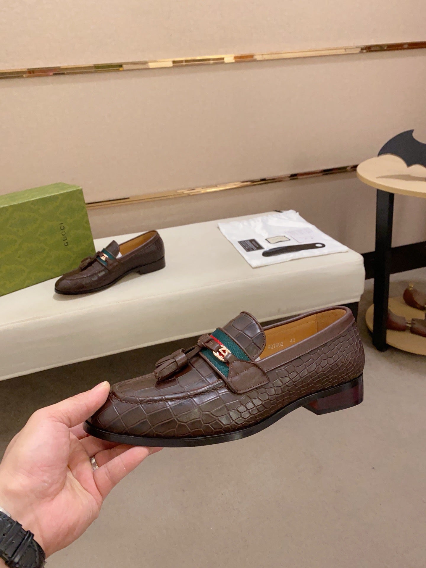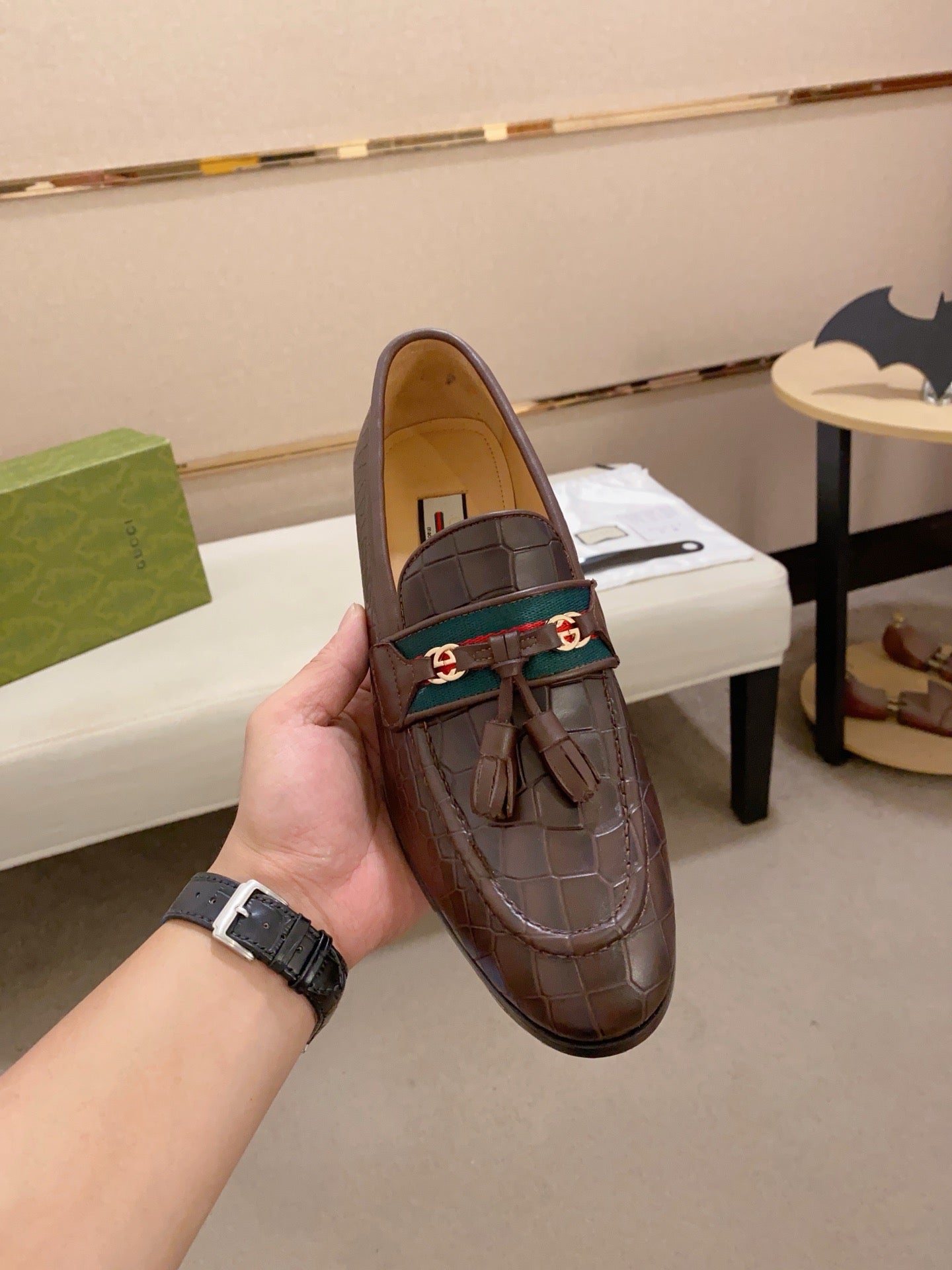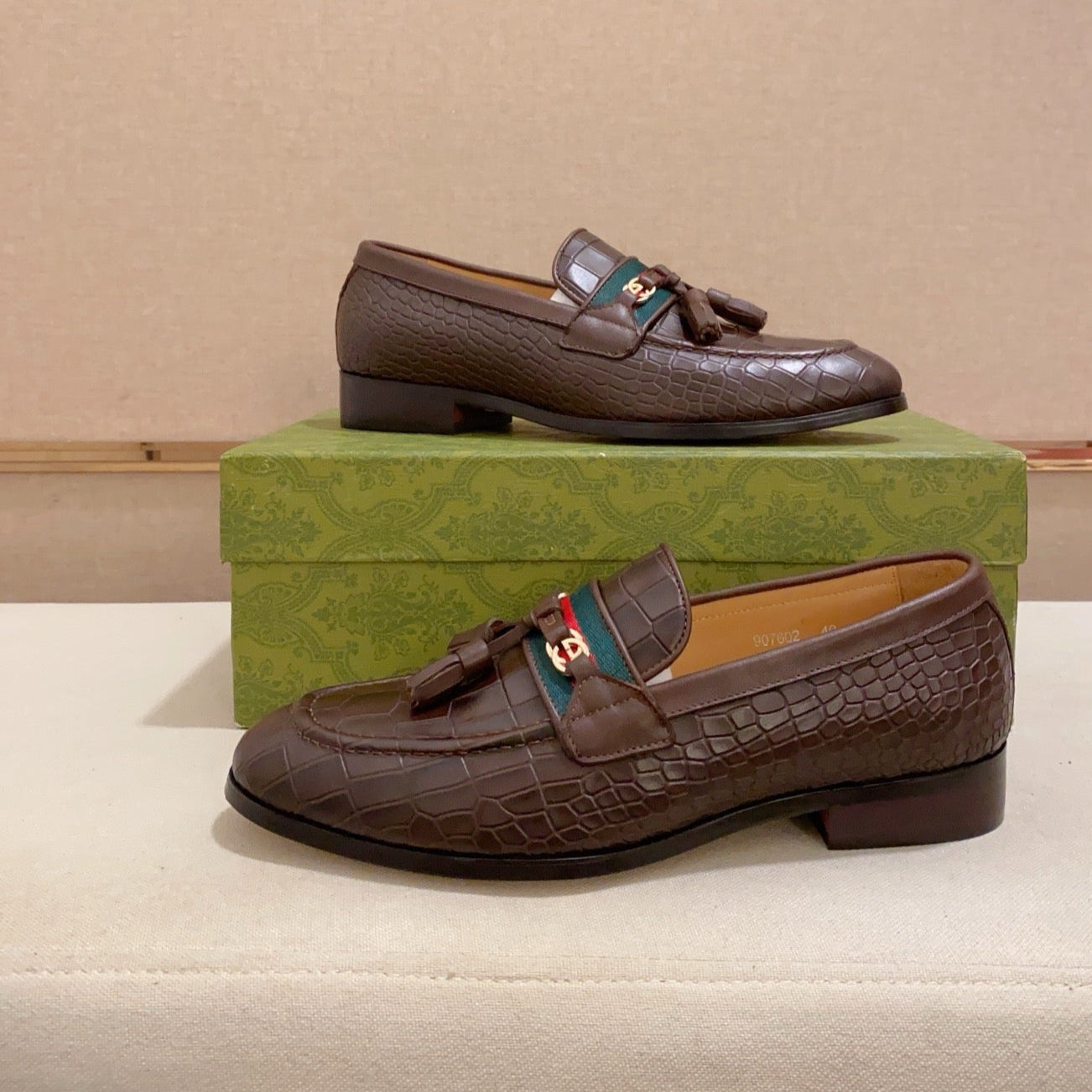 GG Men's Tassel Loafer Brown Embossed Cowhide 573362