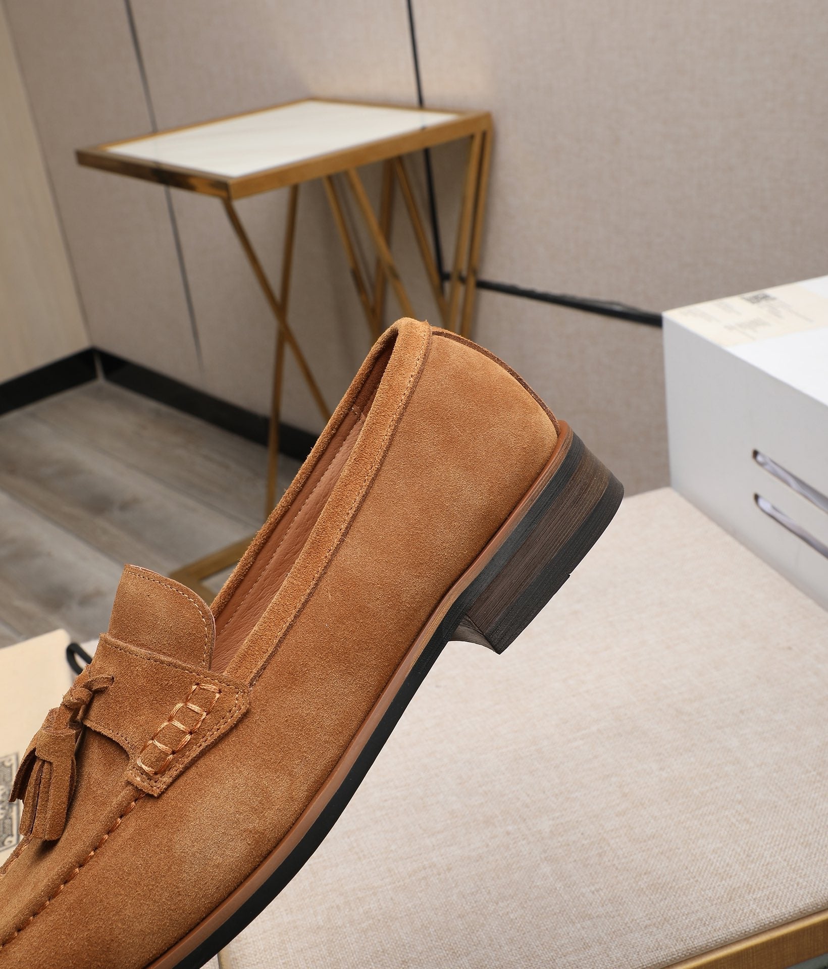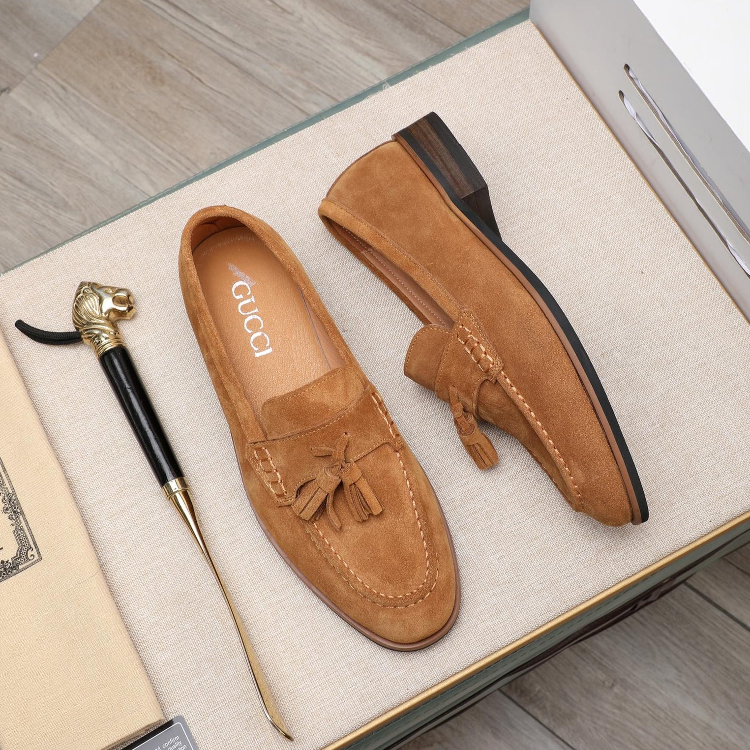 GG Men's Tassel Loafer Light Brown Suede 440168