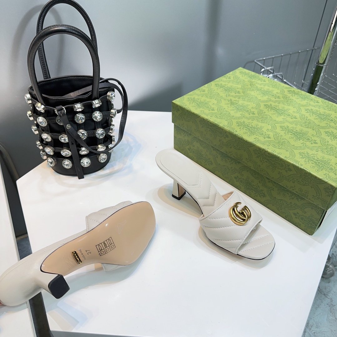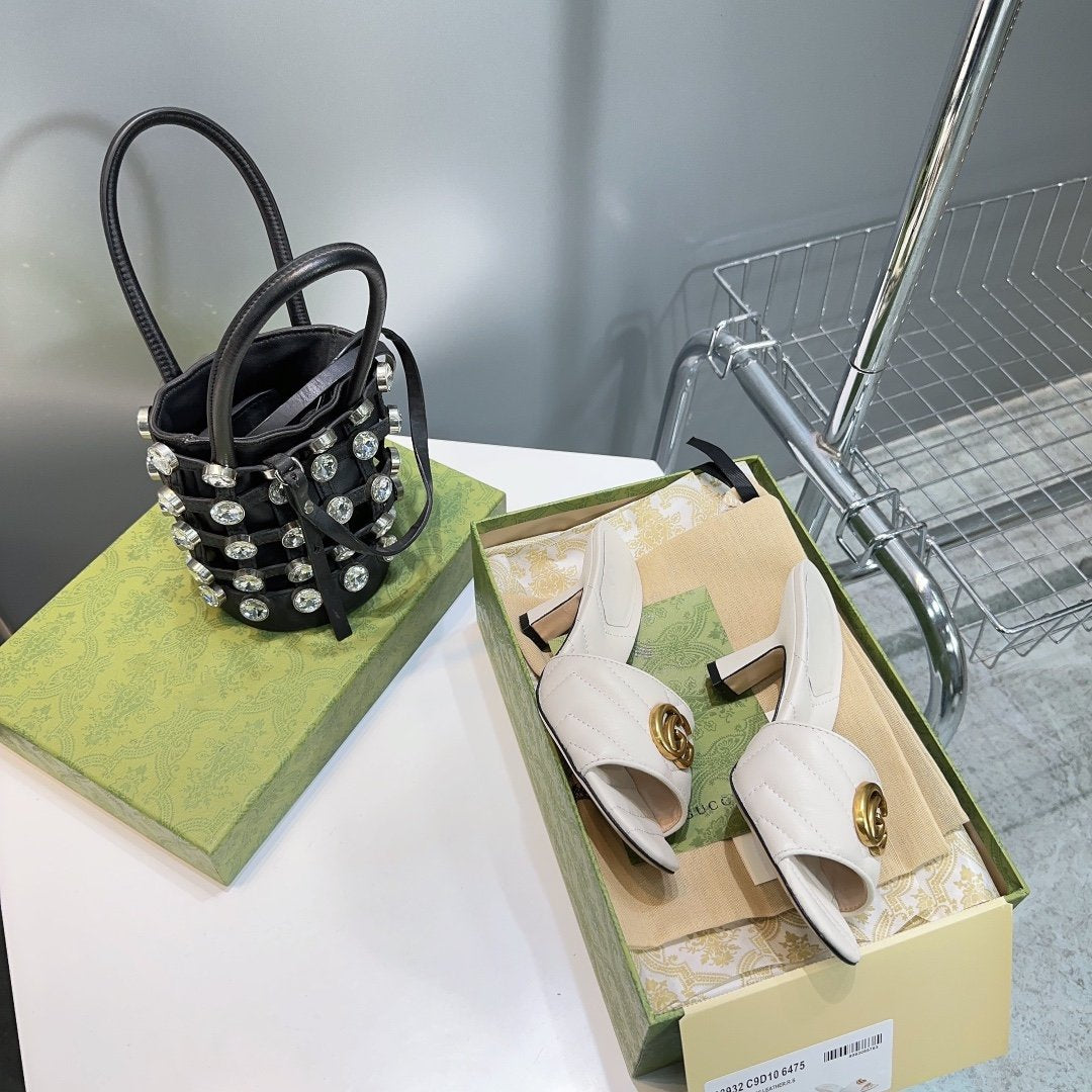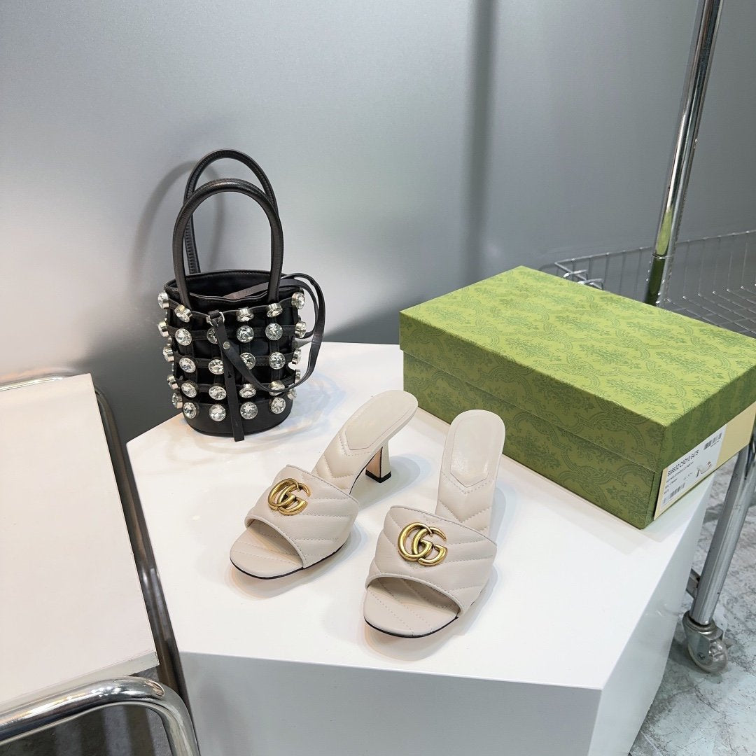 • High-end new embroidered classic G buckle high-heeled sandals.