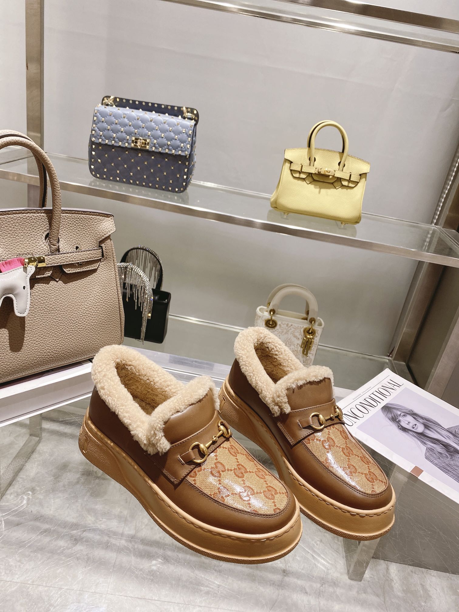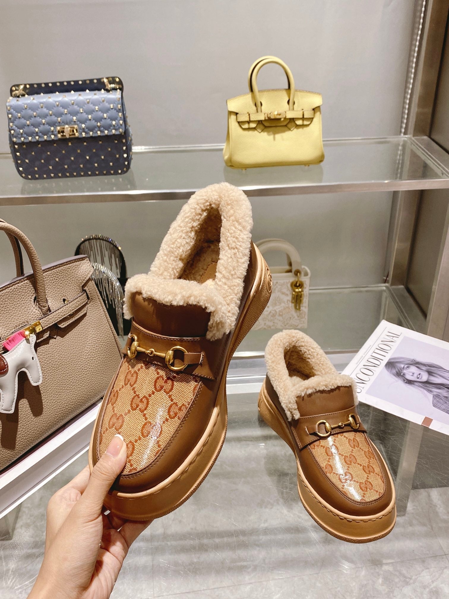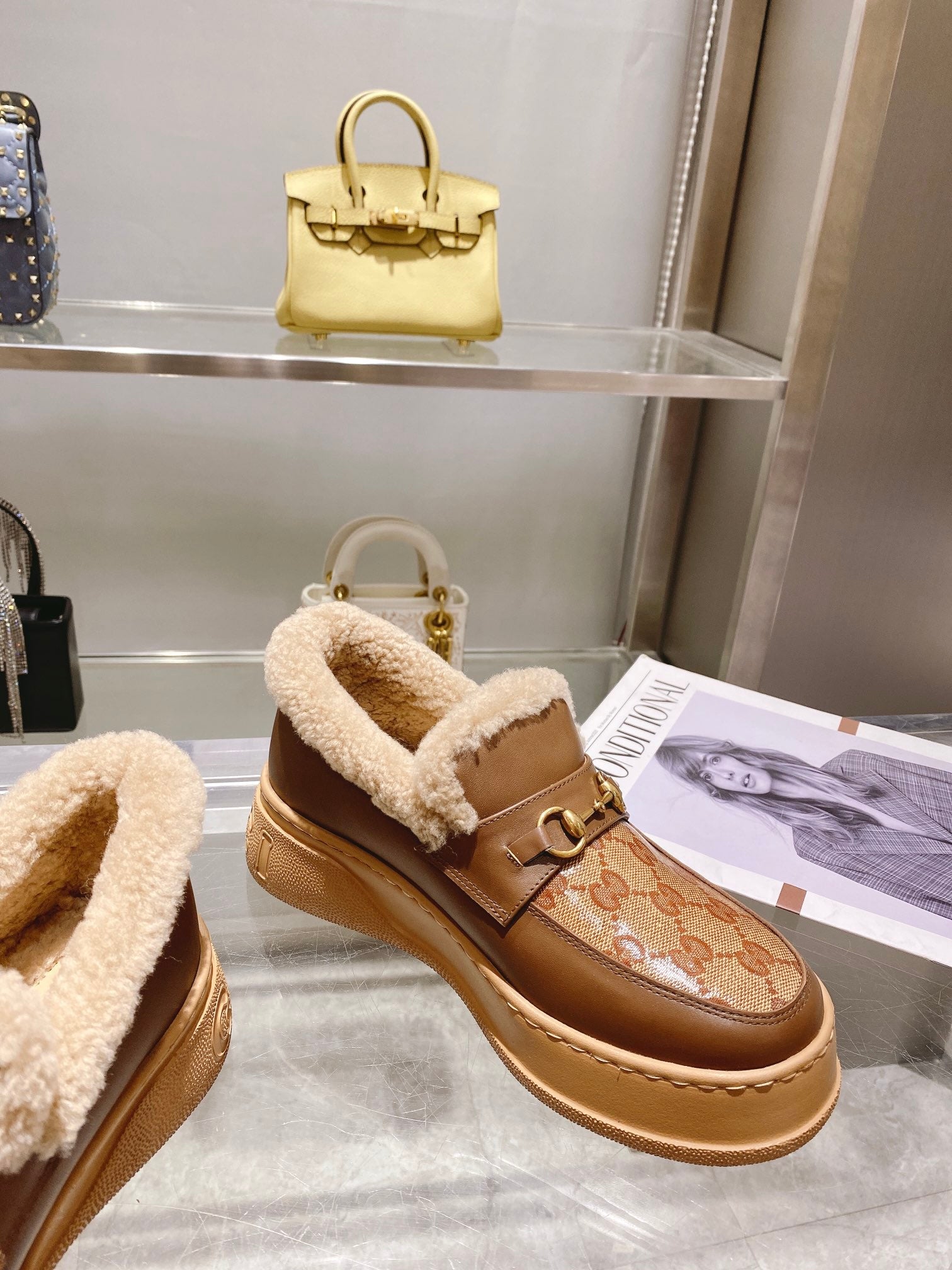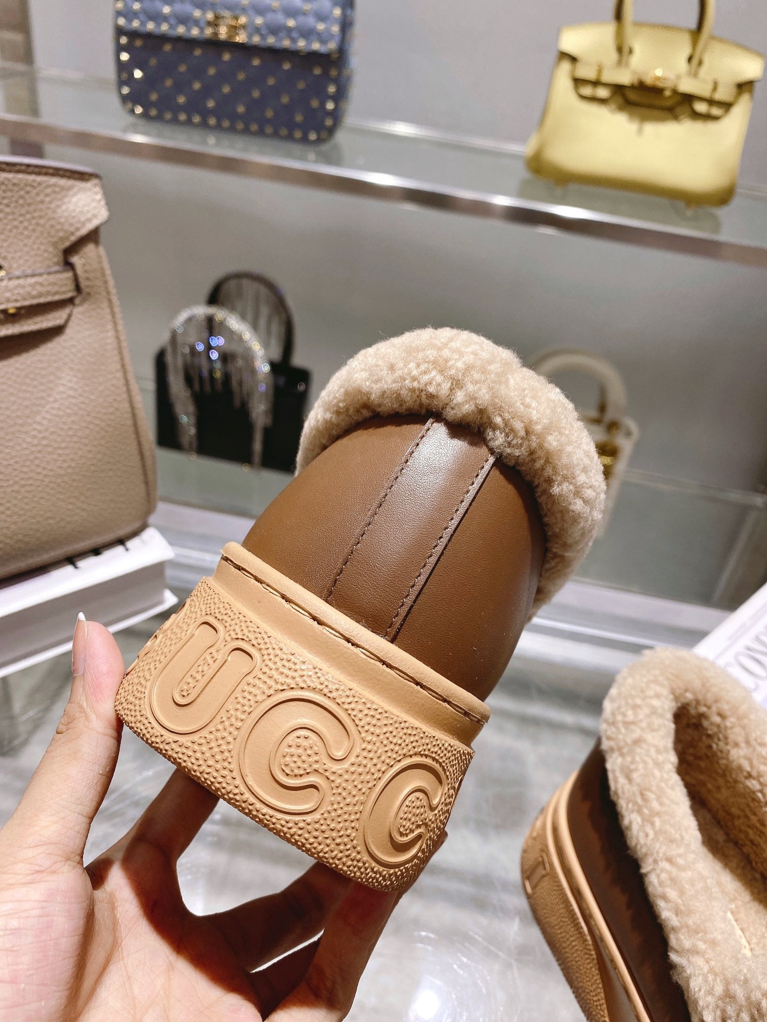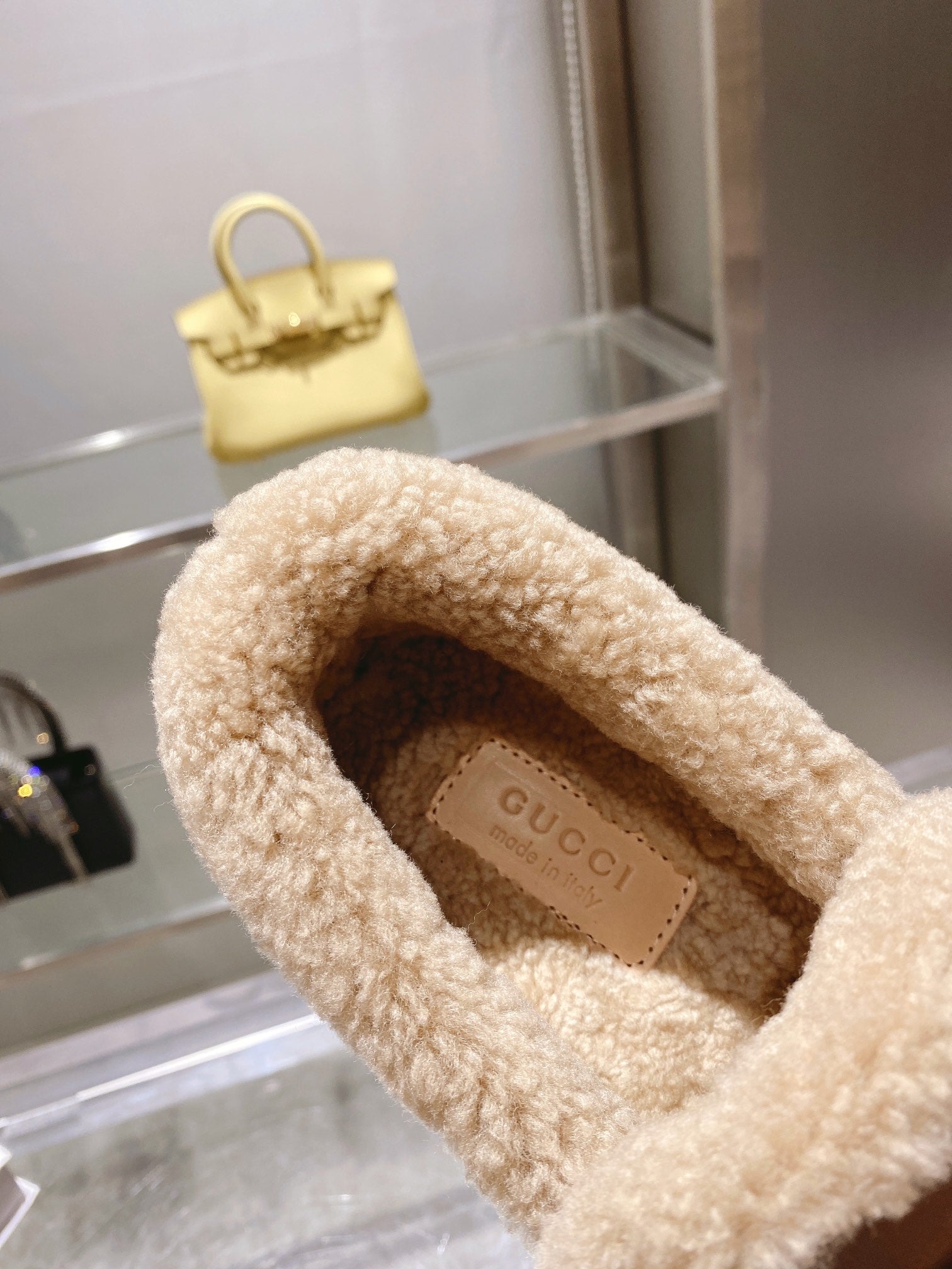 GG Snow Boots Brown Patent Calfskin Wool 576237