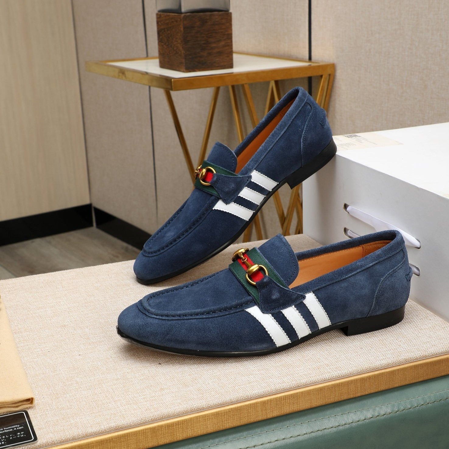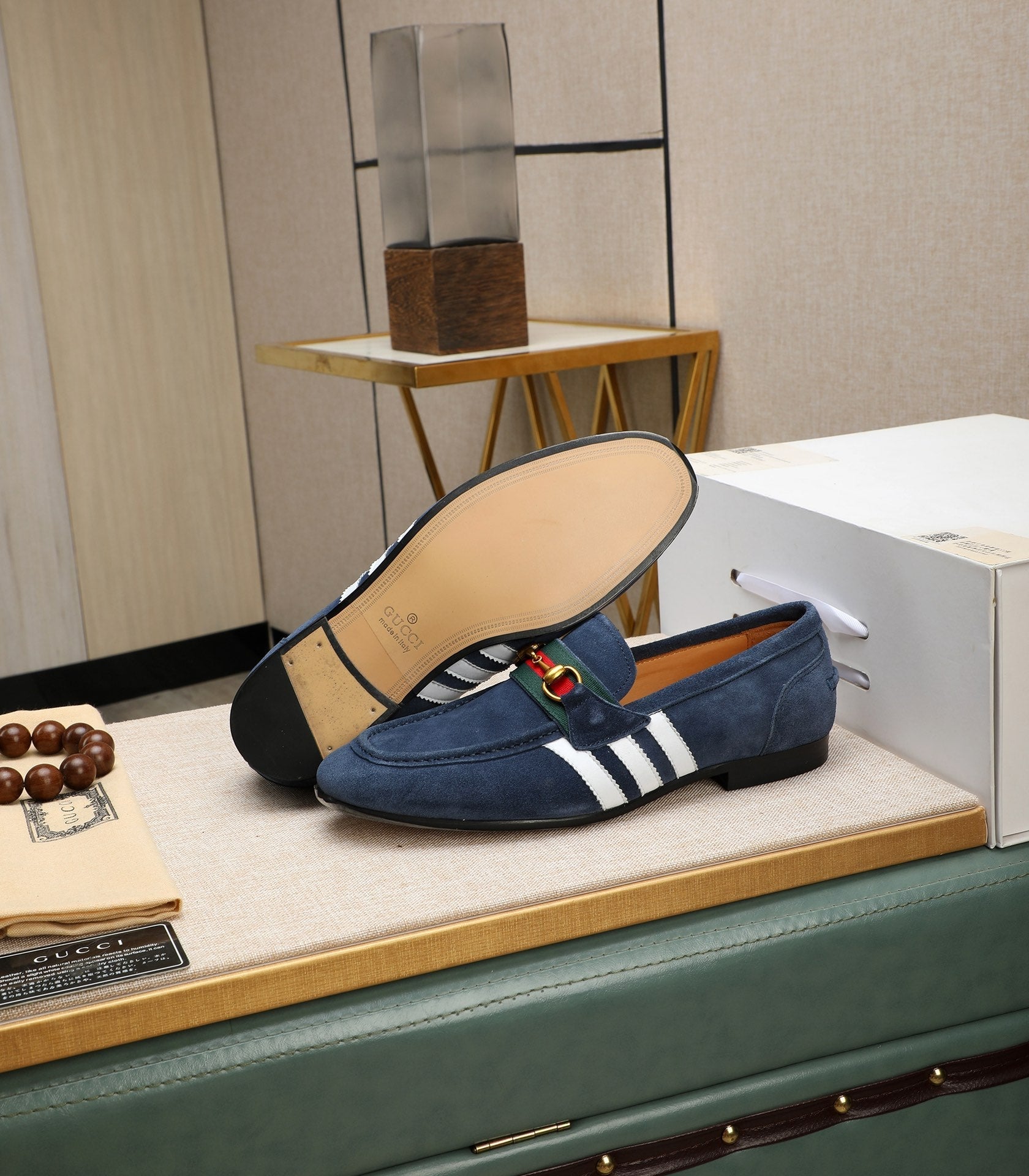 GG x Adidas Men's Jordaan Loafer Blue Suede 456611