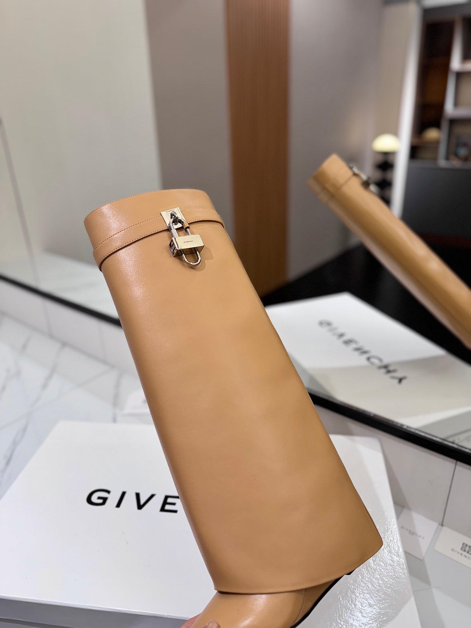 Givenchy 2025 Shark Lock High Boot Beige Calfskin