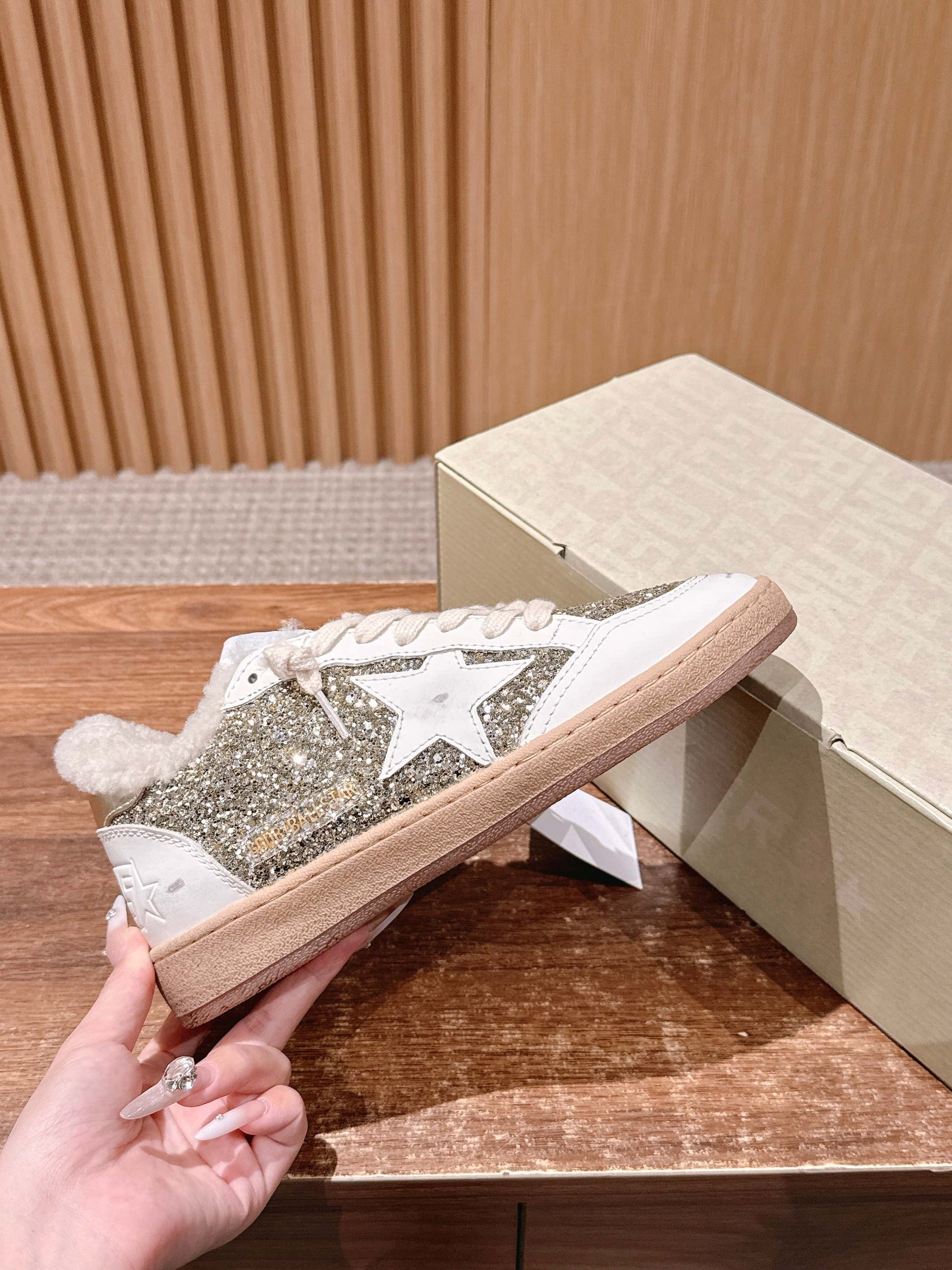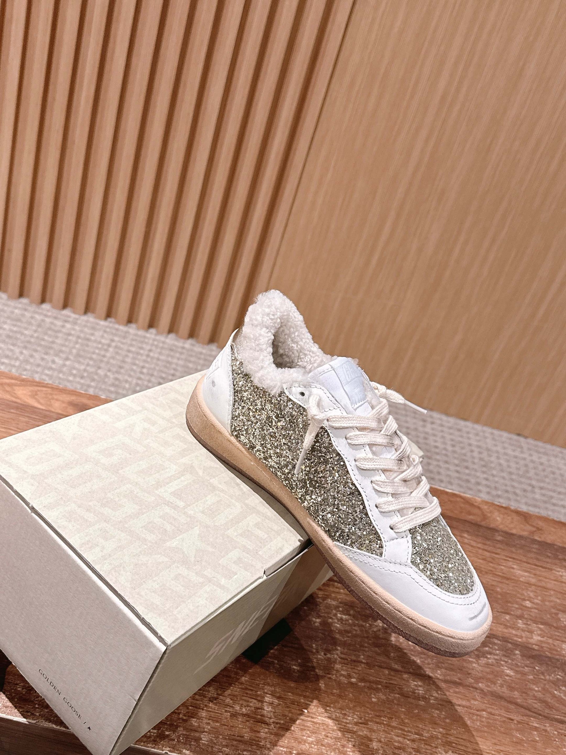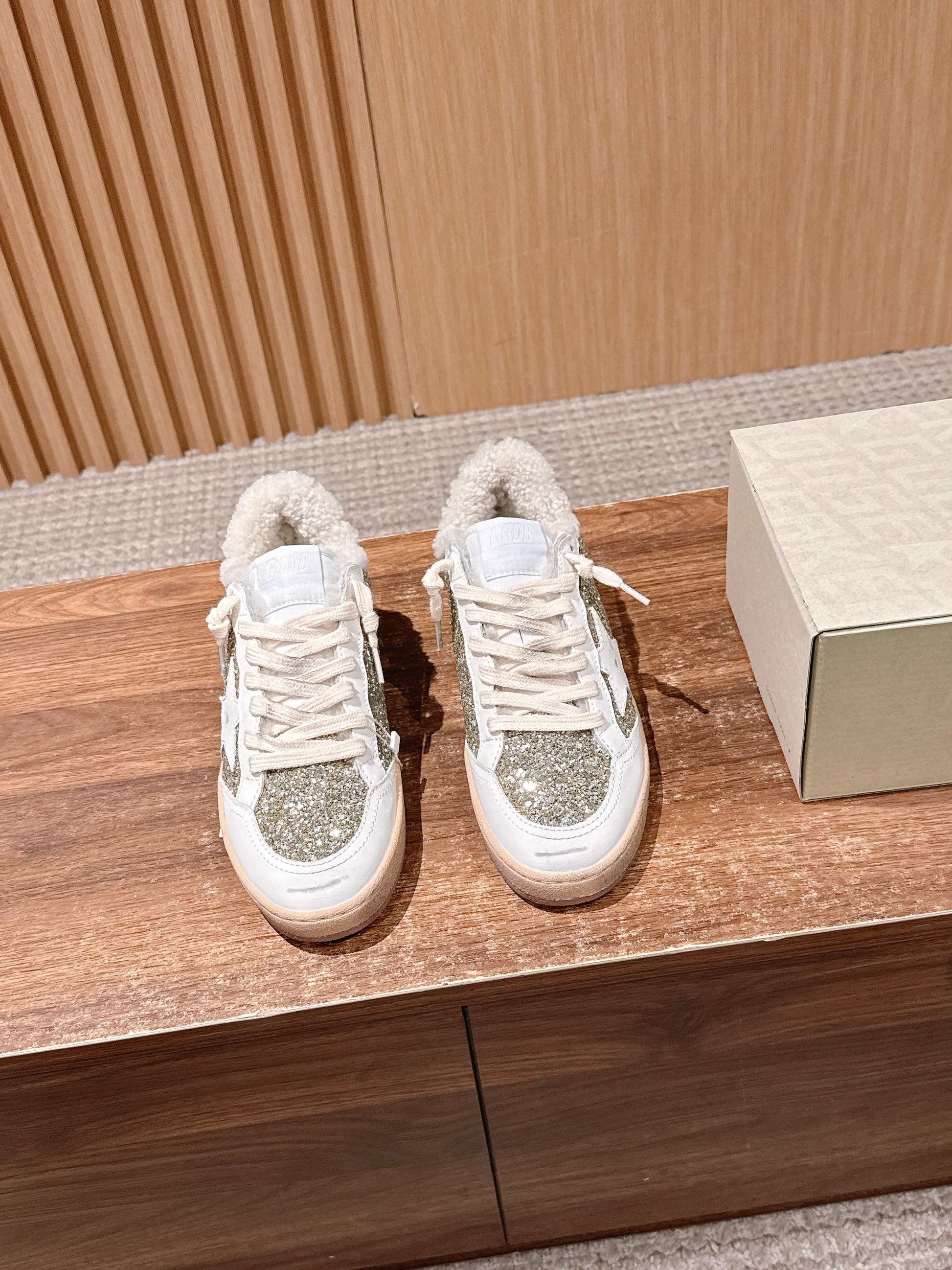 Golden Goose 2025 Wool-Lined Dirty Sneaker White mix Gold Cowhide 444260